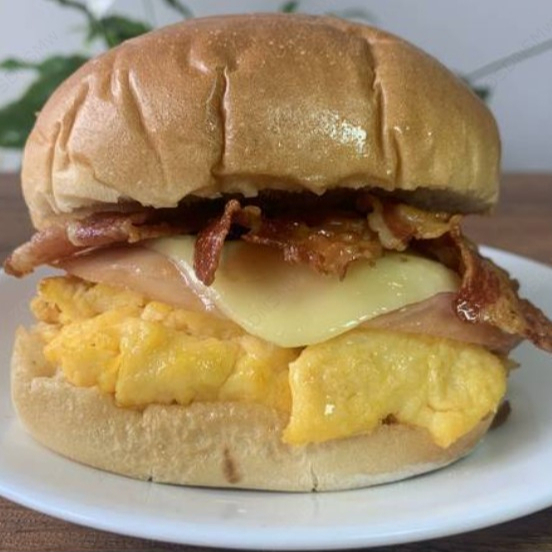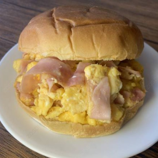 2 Huevos revueltos con jamón con guarnición de frijoles refritos.