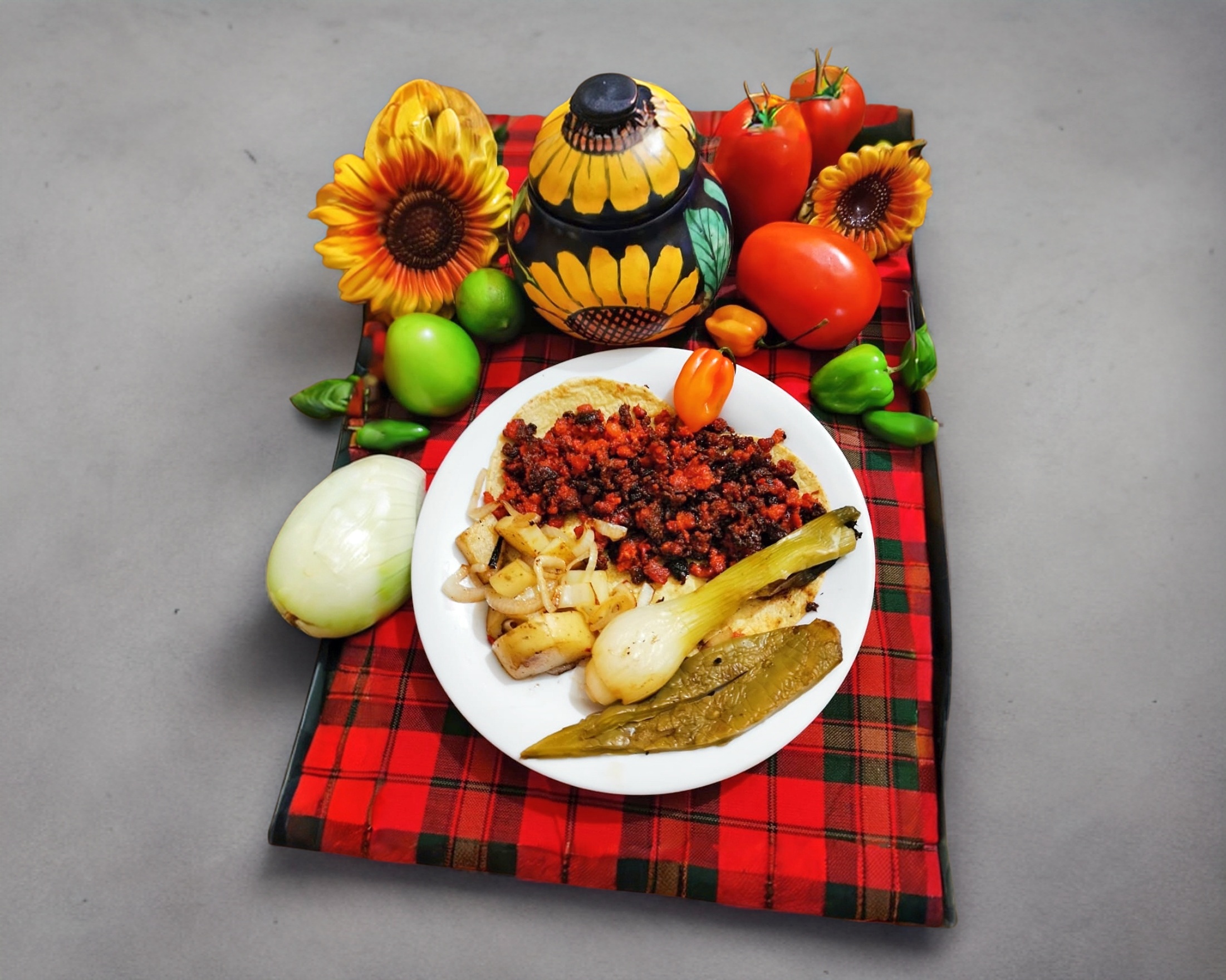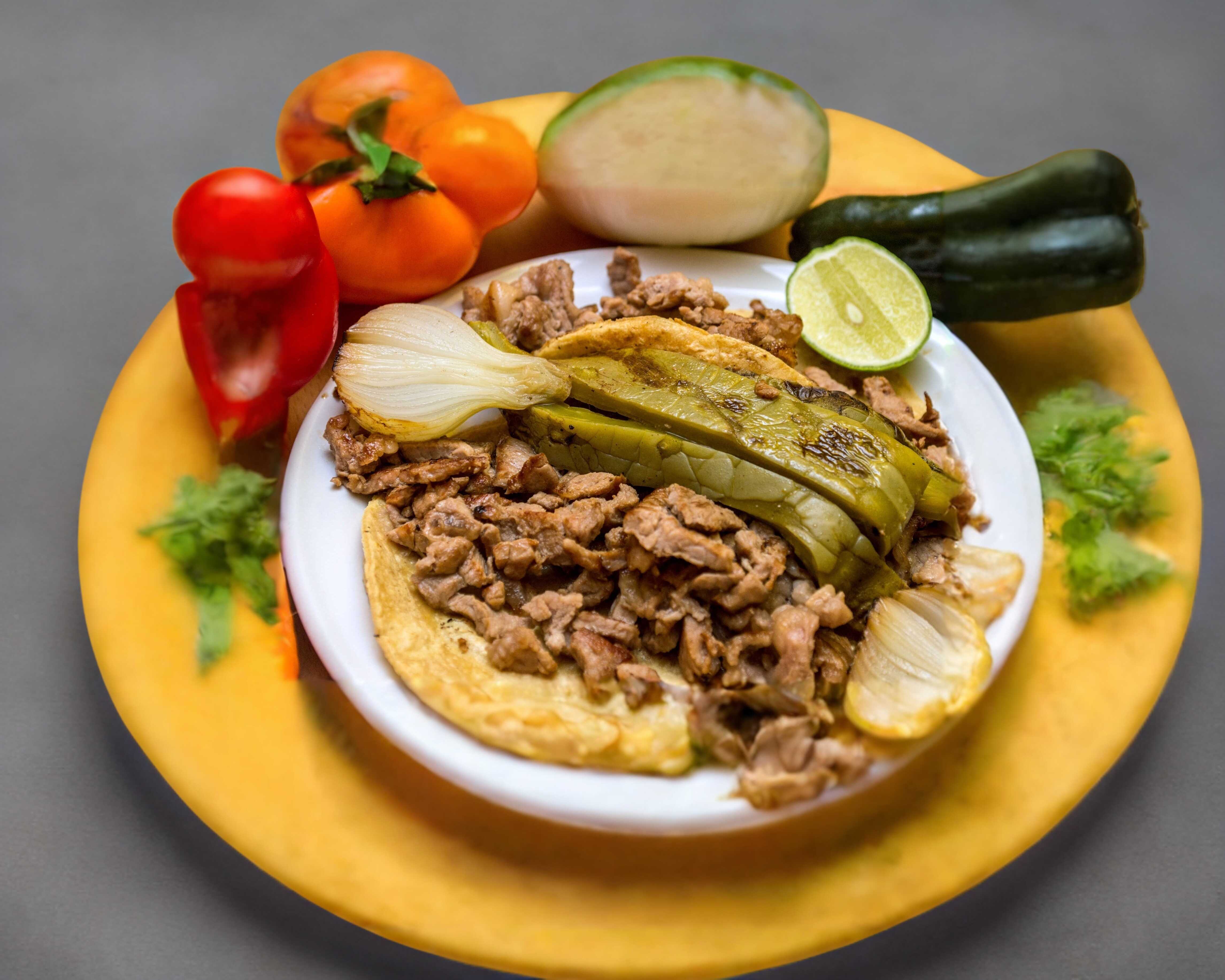 Tres suaves tortillas de maíz rellenas con jugoso bistec asado al momento, acompañadas de nopales y cebollitas doradas que realzan su sabor. Taco por unidad