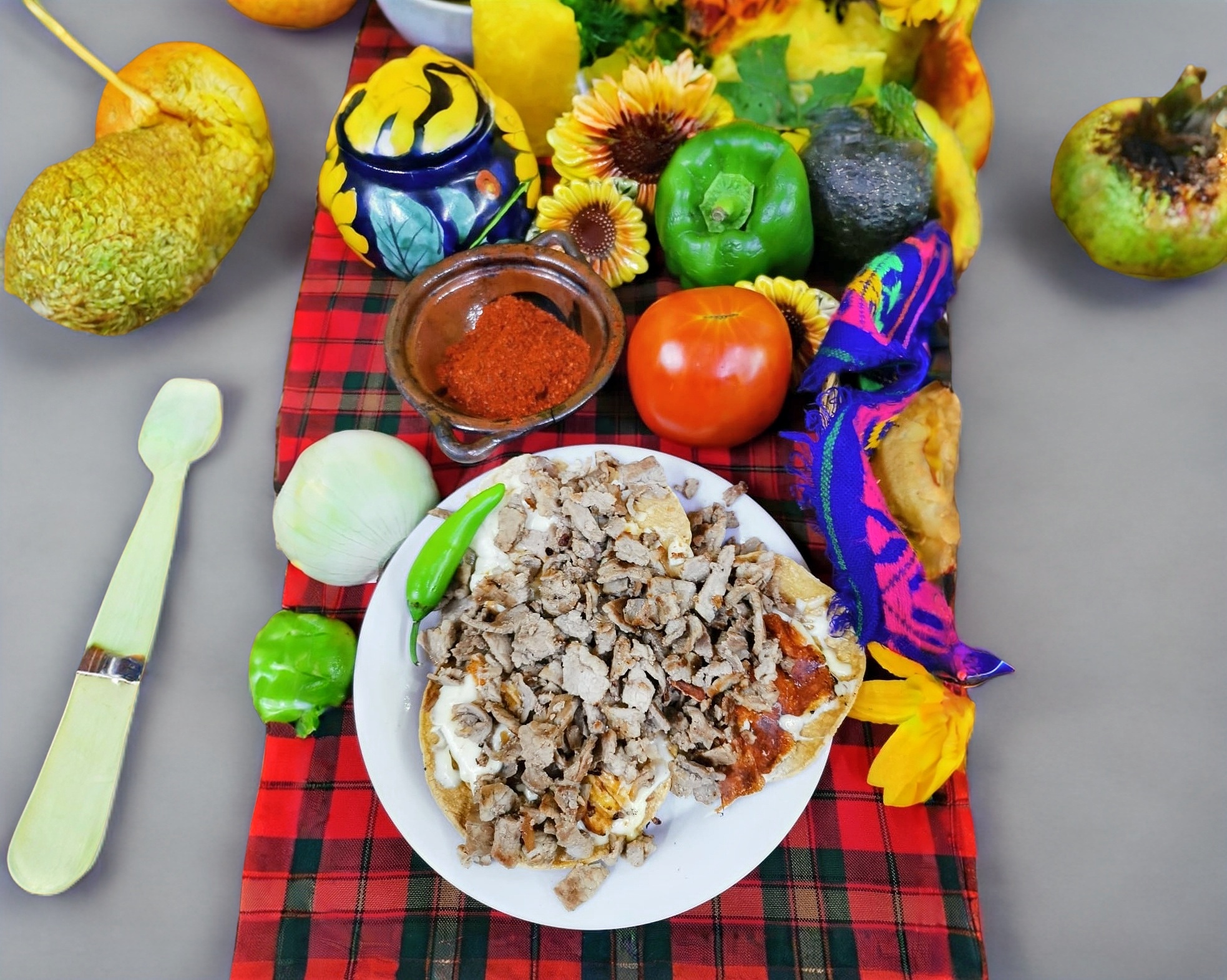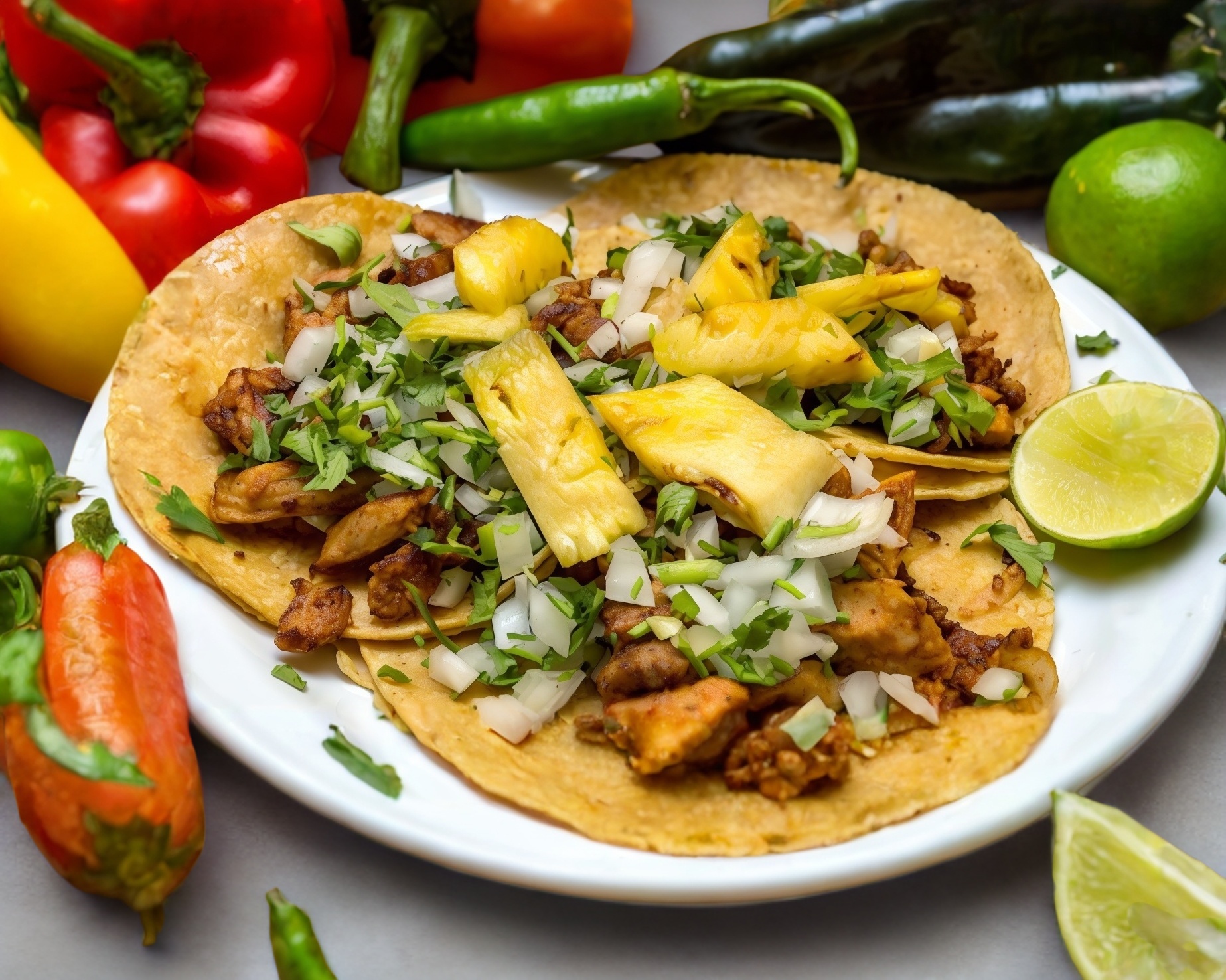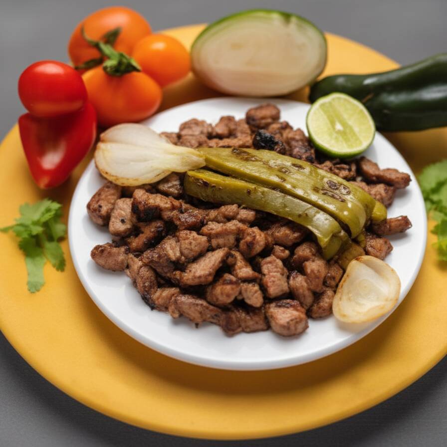 Bistec, chuleta, tocino, pastor, morrón, cebolla.