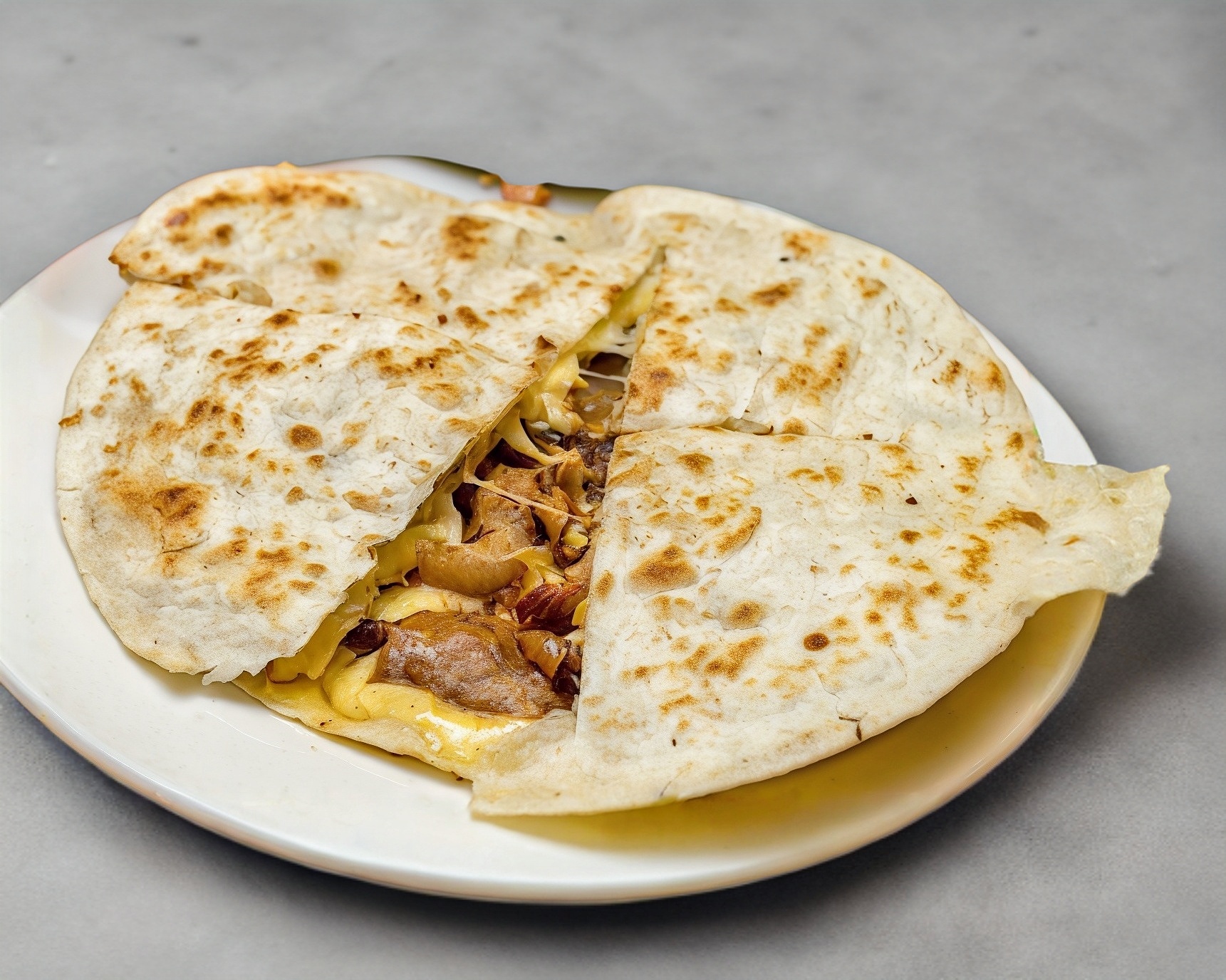 5 Quesadillas con tortilla de harina con queso gratinado.