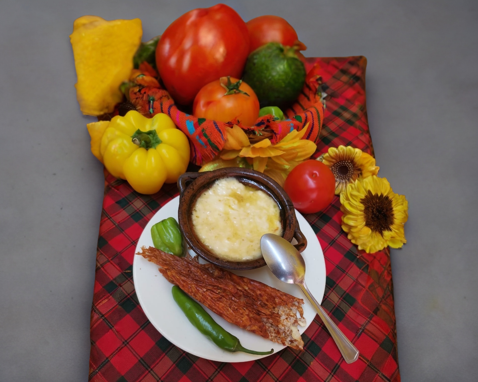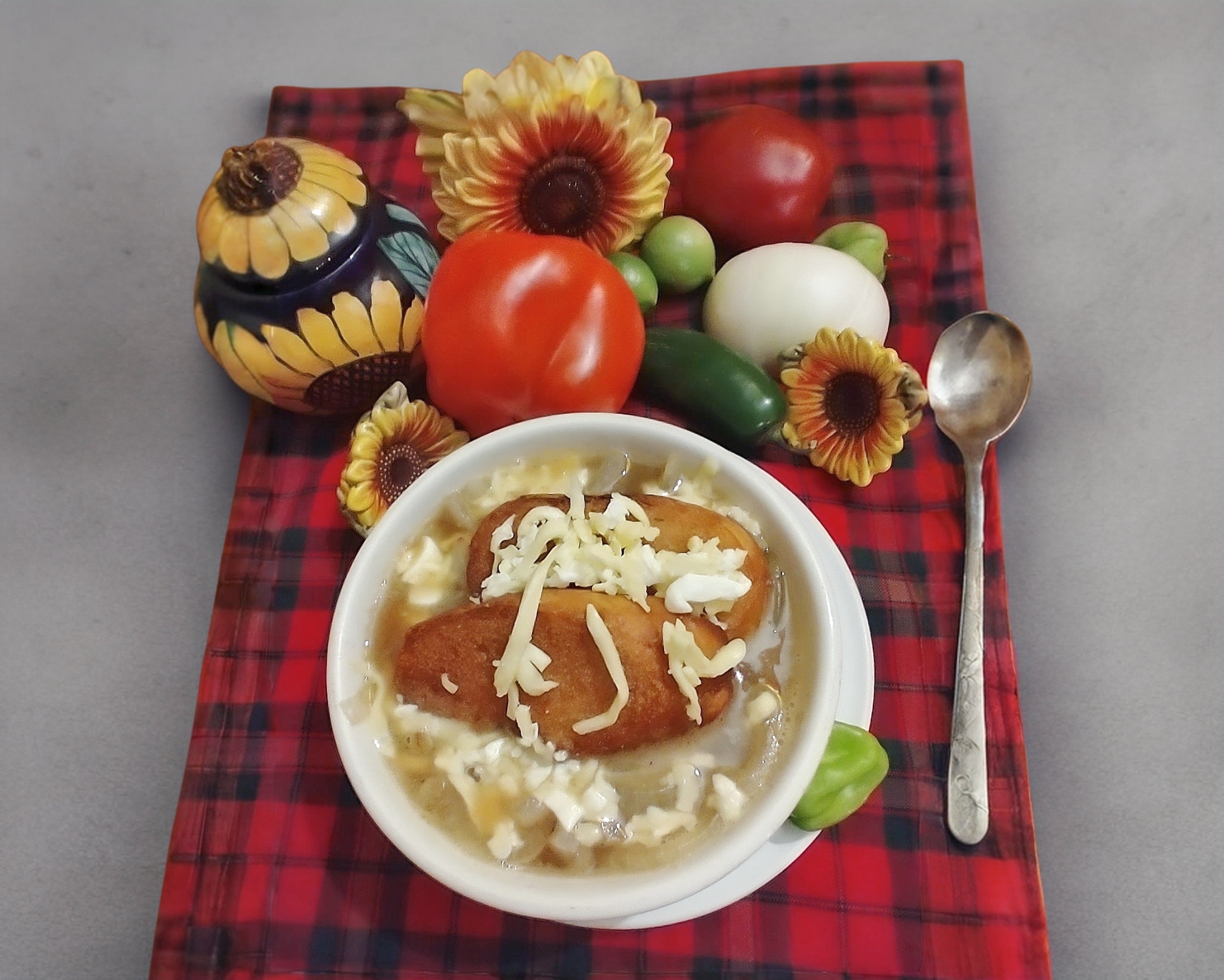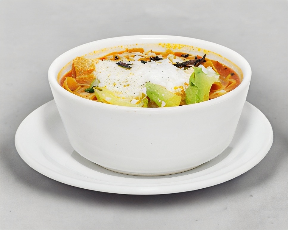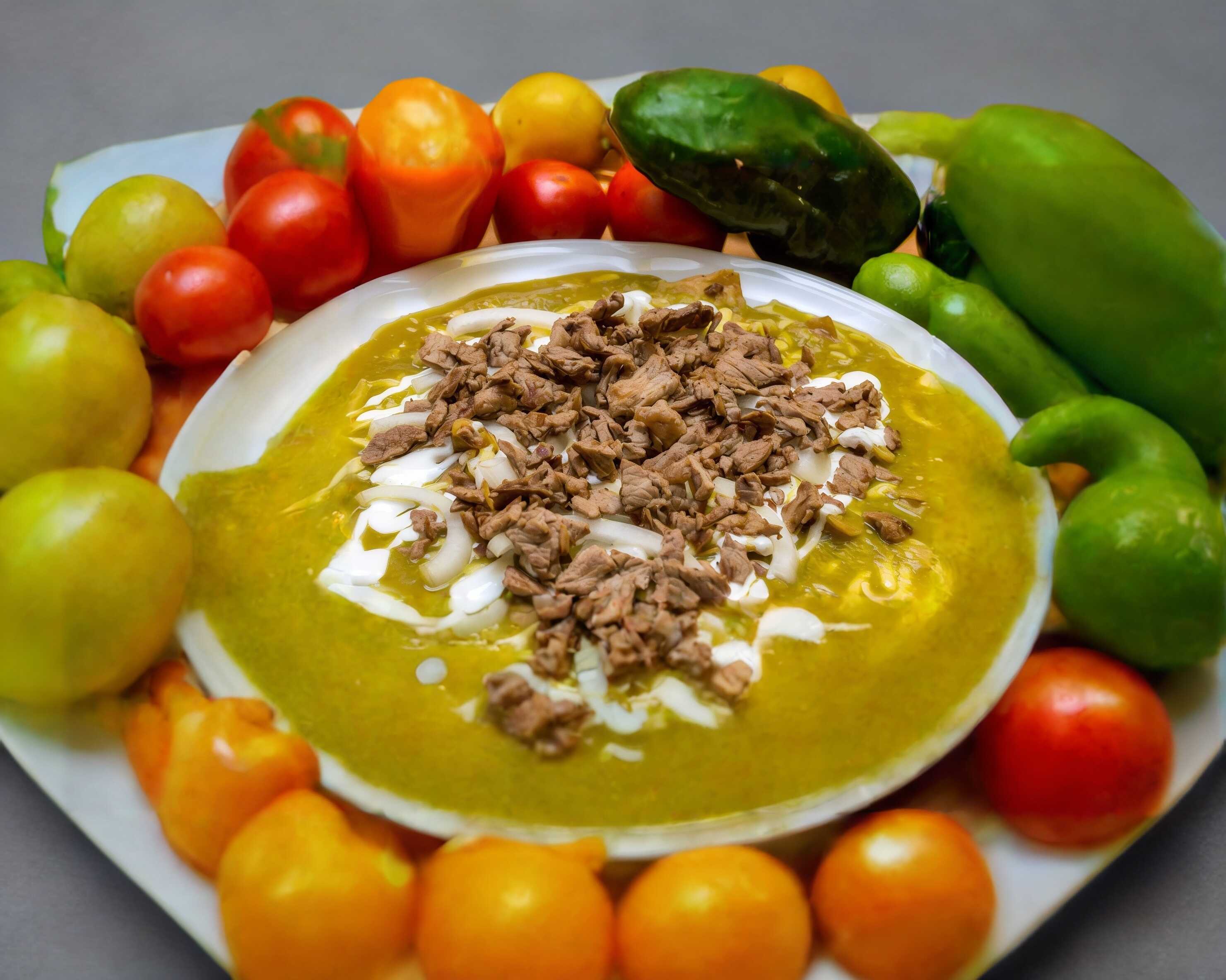 caldo rojo casero con el toque perfecto de especias, servido con tiritas de tortilla frita crujiente, queso fresco desmoronado, crema suave, aguacate cremoso y un toque de chile pasilla dorado que realza su aroma y sabor.