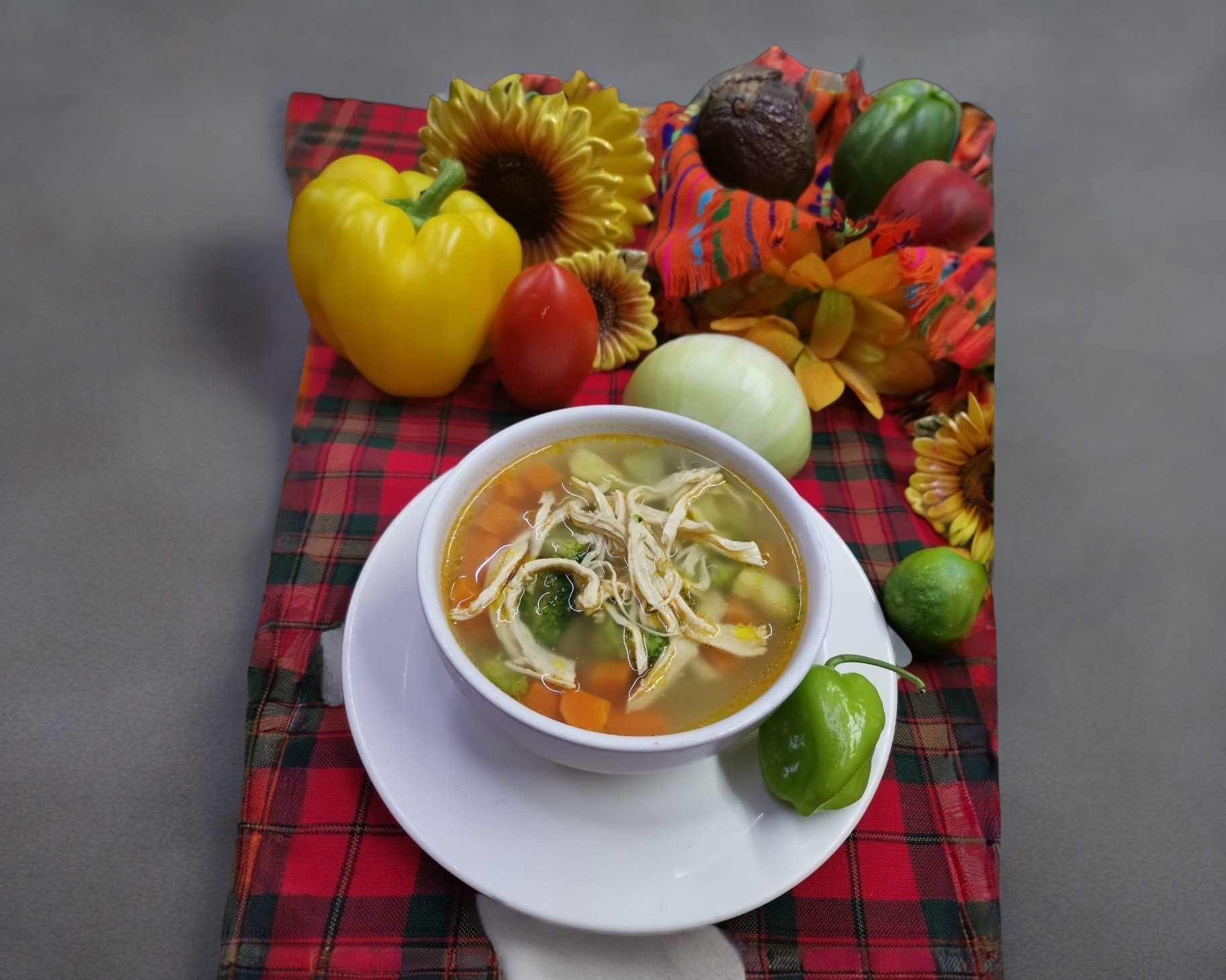 Caldito reconfortante y lleno de sabor, preparado con pollo desmenuzado, arroz suave y verduras frescas cocidas al punto perfecto.