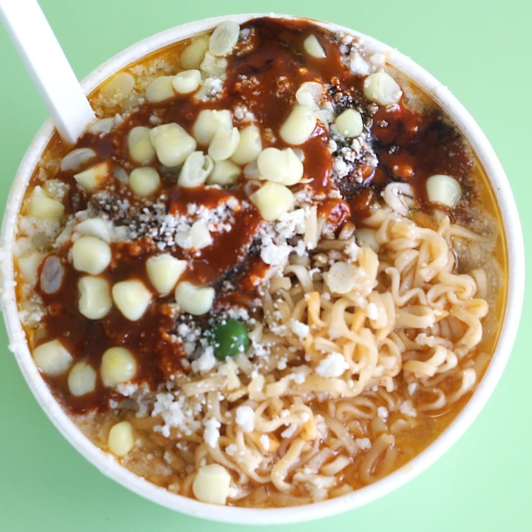 Con maruchan, incluye mayonesa, queso, limón, sal y picante.