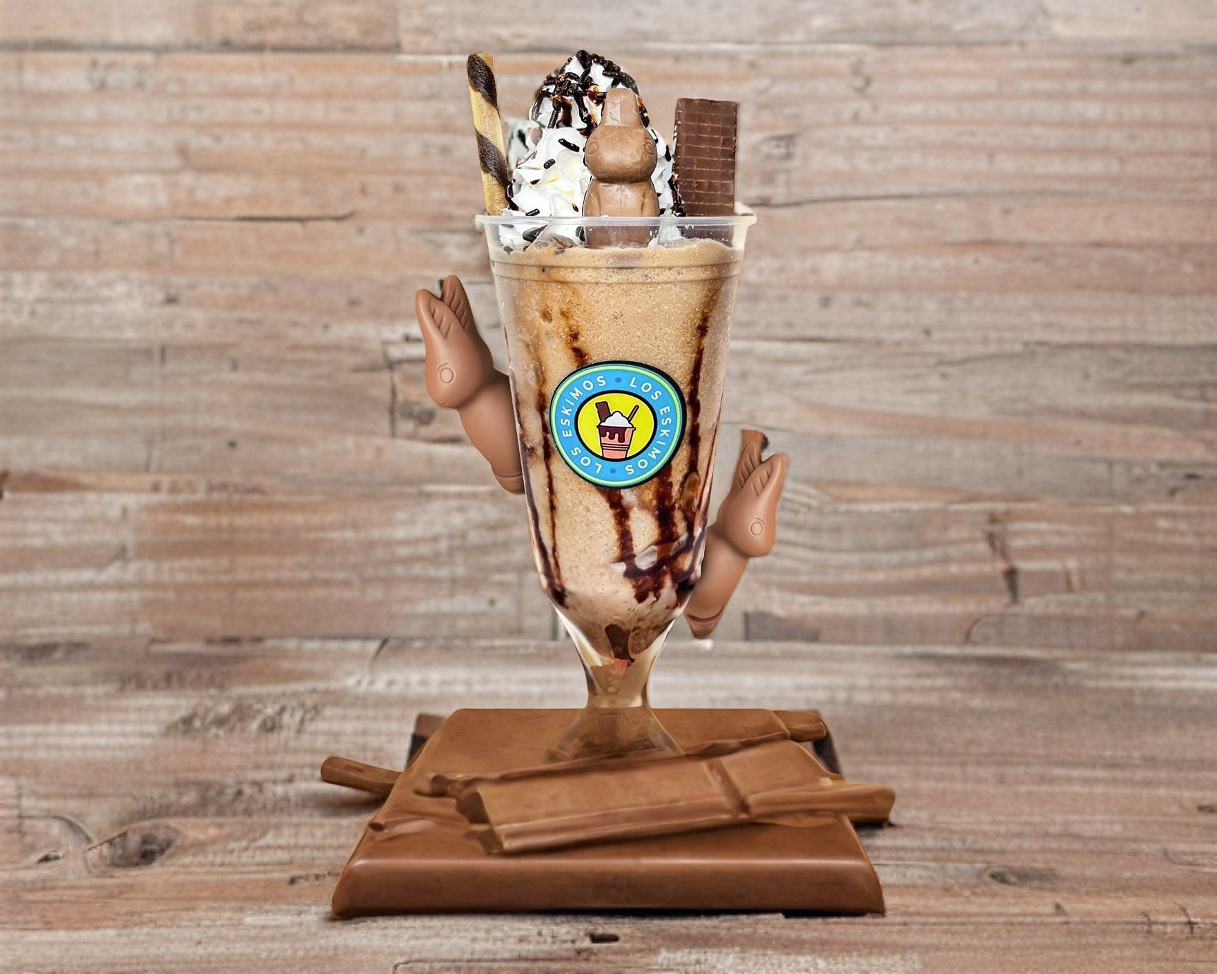 Frappé de conejito, con un conejito turin, y galletas para acompañar.