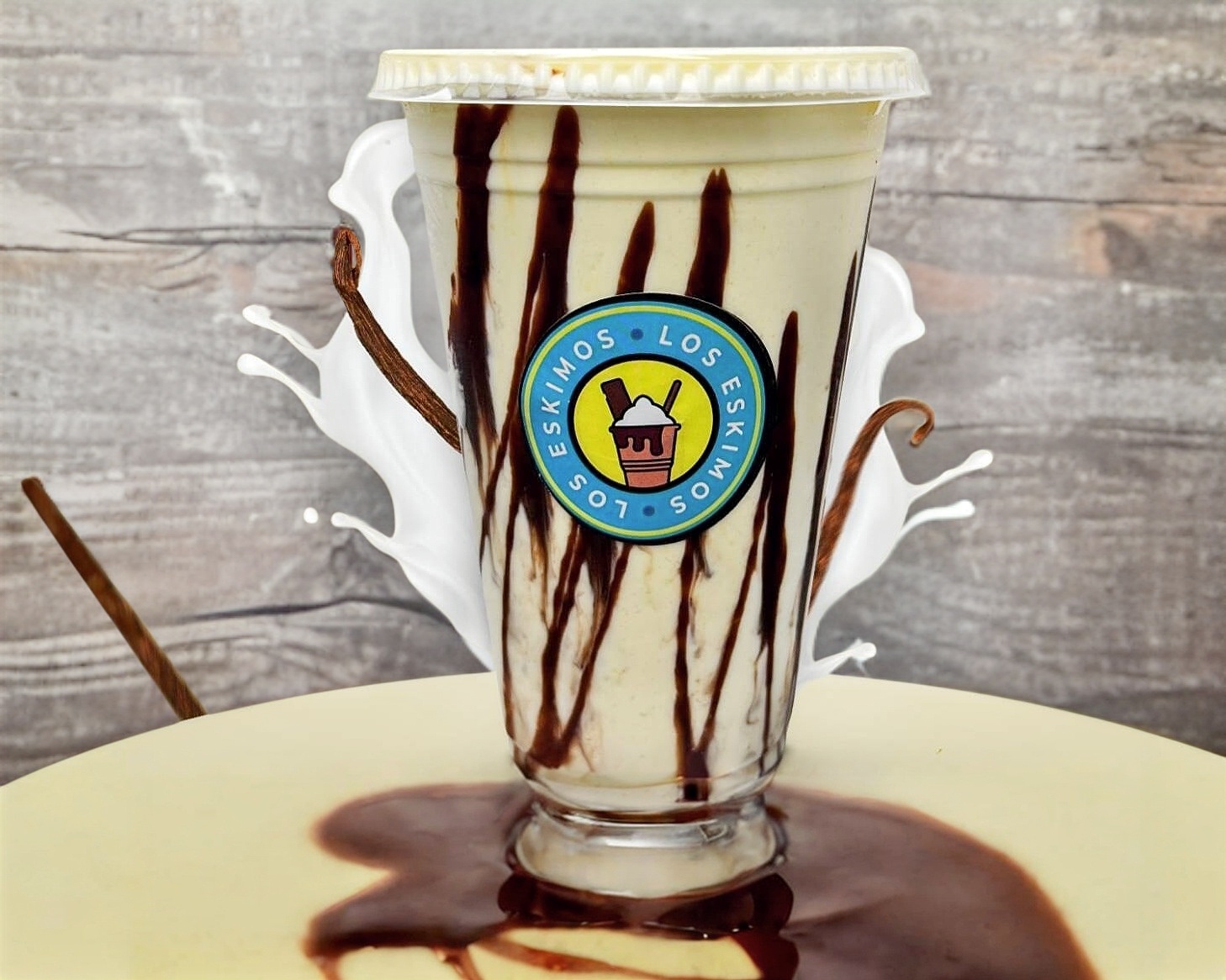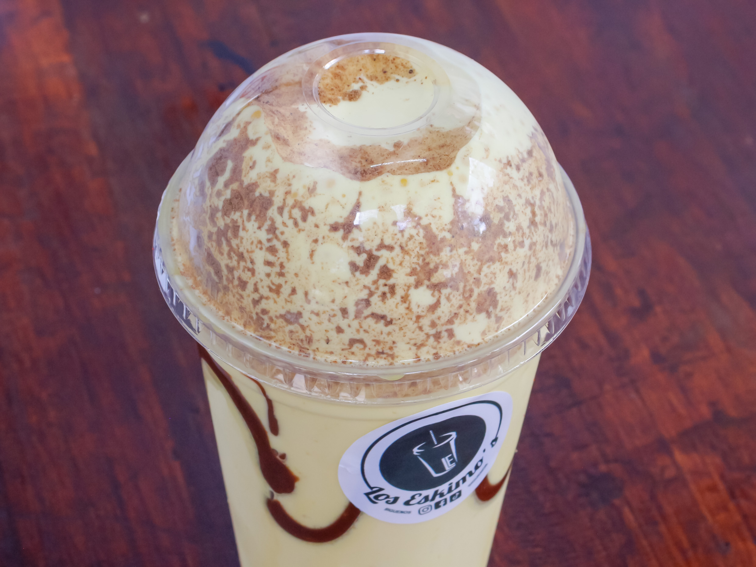 Frappé bañado en 2 onzas de rompope con chocolate, canastita de rompope, con gaelltas. 16 onzas.