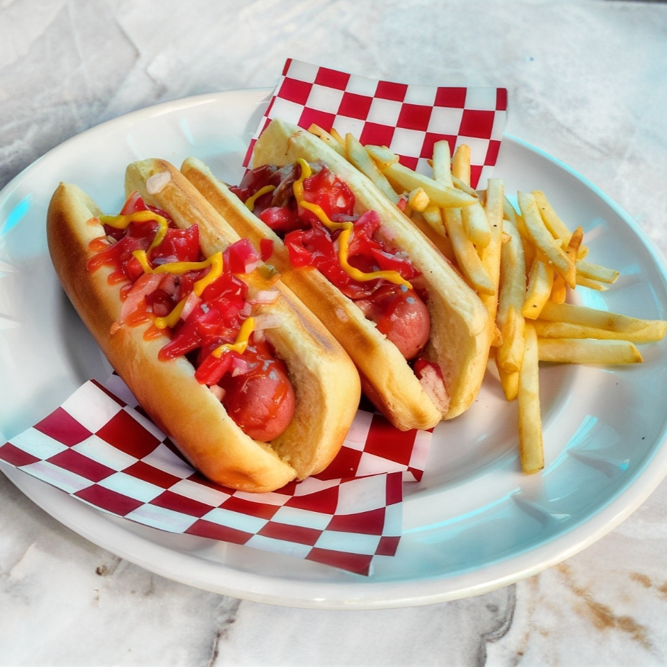 Jitomate, cebolla, rajas, mayonesa, catsup, mostaza, acompañada con 100 gr. de papas a la francesa.