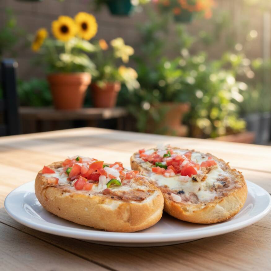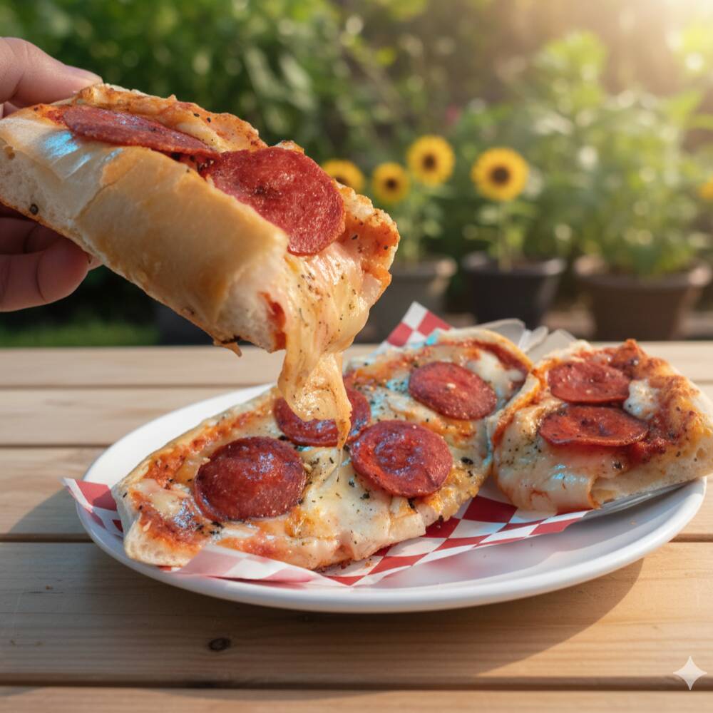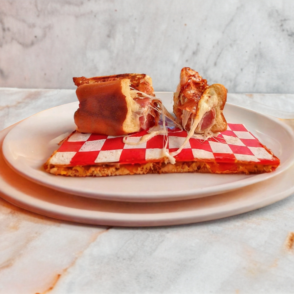 Estilo pizza. 2 piezas de molletes untada con salsa de tomate y gratinados con nuestra combinación de quesos, especias y pepperoni.