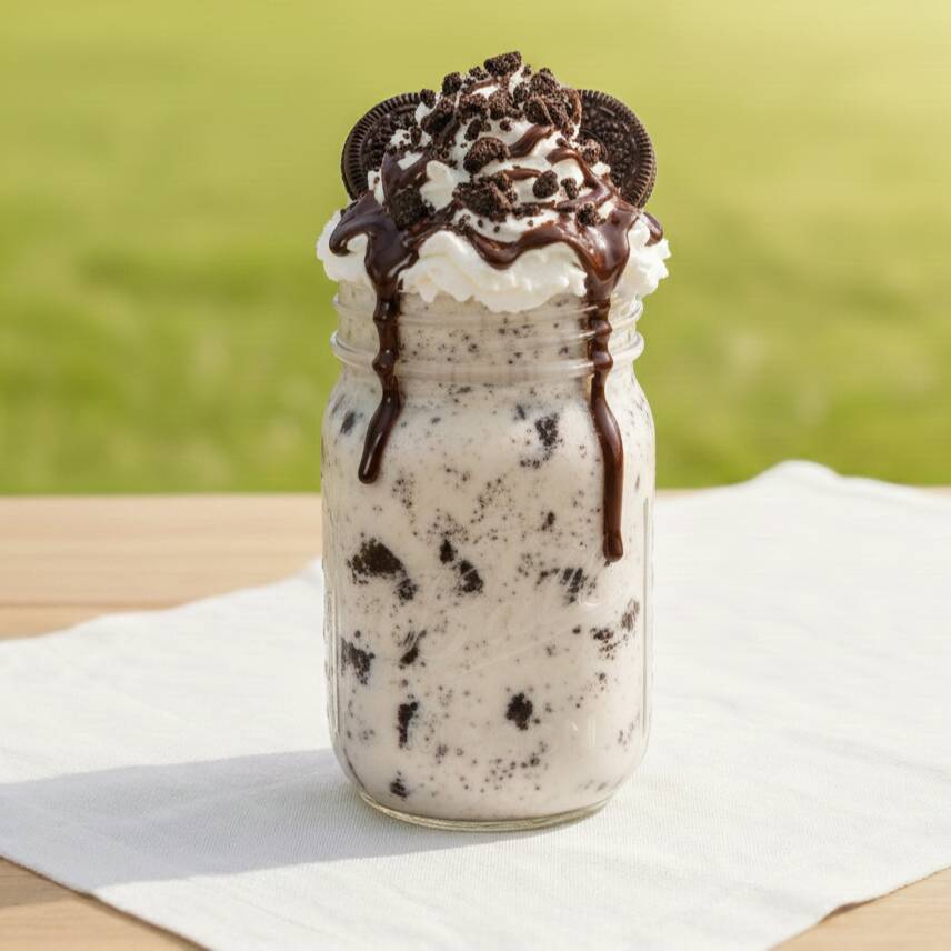 Fresco, divertido y delicioso. Nuestro frappé (16oz) mezcla el sabor clásico de la vainilla y el chocolate de la galleta Oreo en una base de leche súper cremosa. Decorado con crema batida, jarabe de chocolate y granillo. Acompañado de su galleta waffer por separado. ¡La bebida perfecta para los amantes de las galletas!