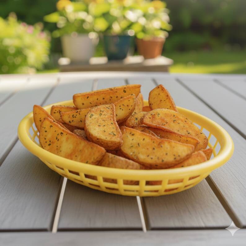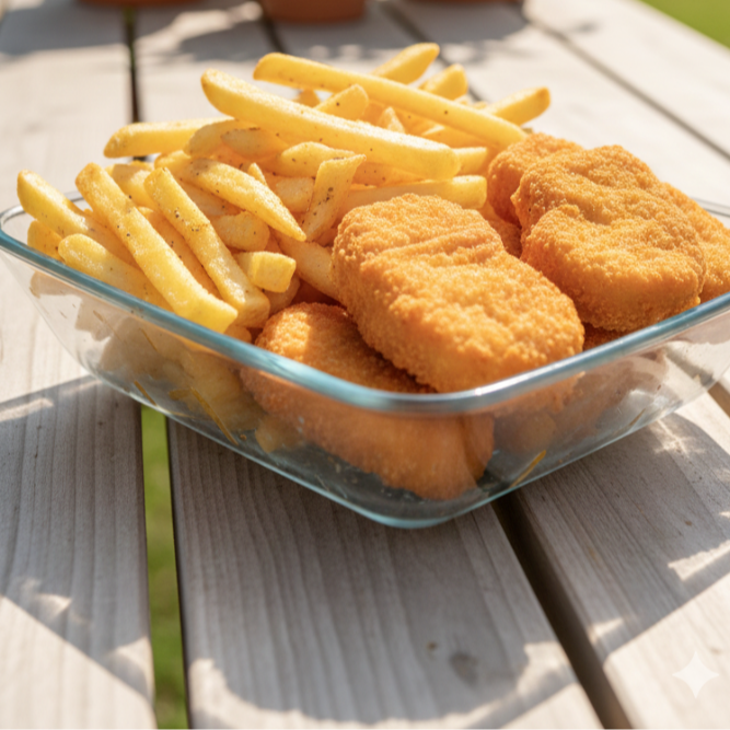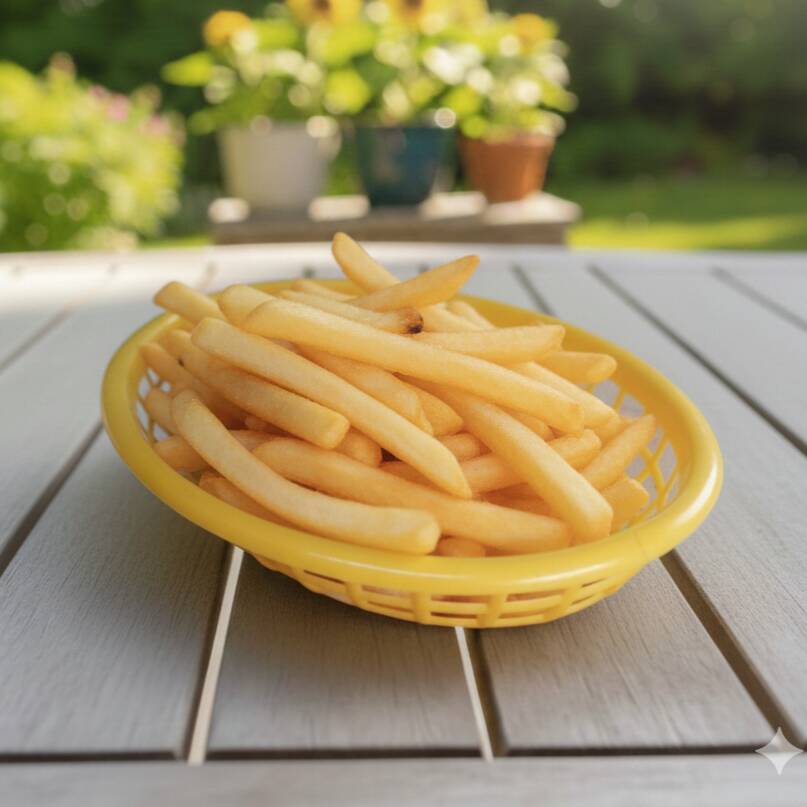 6 Pzas acampañadas con porción de papas a la francesa (100 gr.), catsup, salsa y queso amarillo.