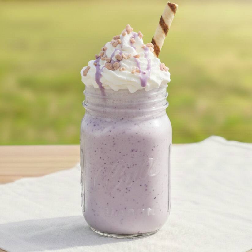 Fresco, cremoso y con un color espectacular. Nuestro frappé de taro (16oz) es la mezcla perfecta de dulzura y originalidad. Viene decorado con crema batida, jarabe de chocolate, granillo de colores y su galleta waffer crujiente por separado. ¡La opción perfecta para quienes buscan algo diferente y totalmente delicioso!