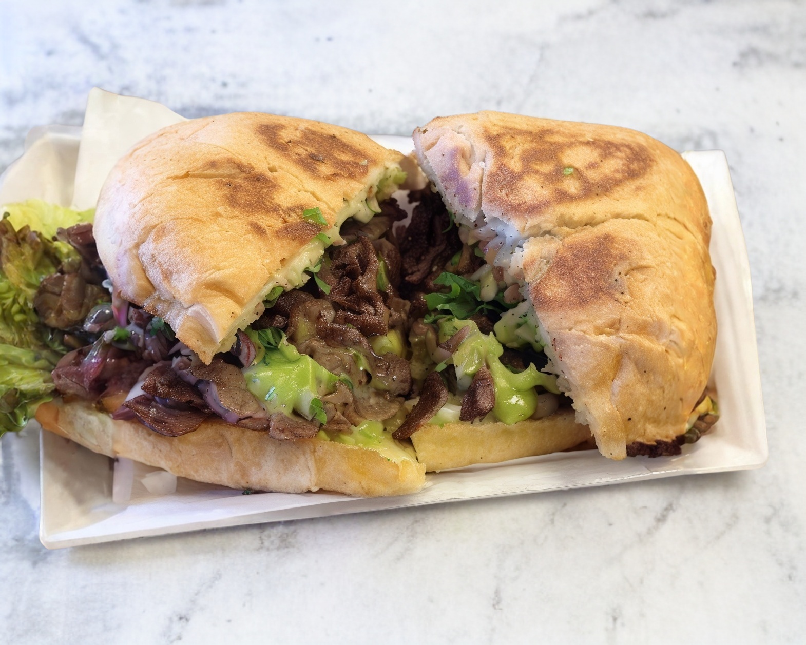 Telera rellena de porción generosa de suadero.