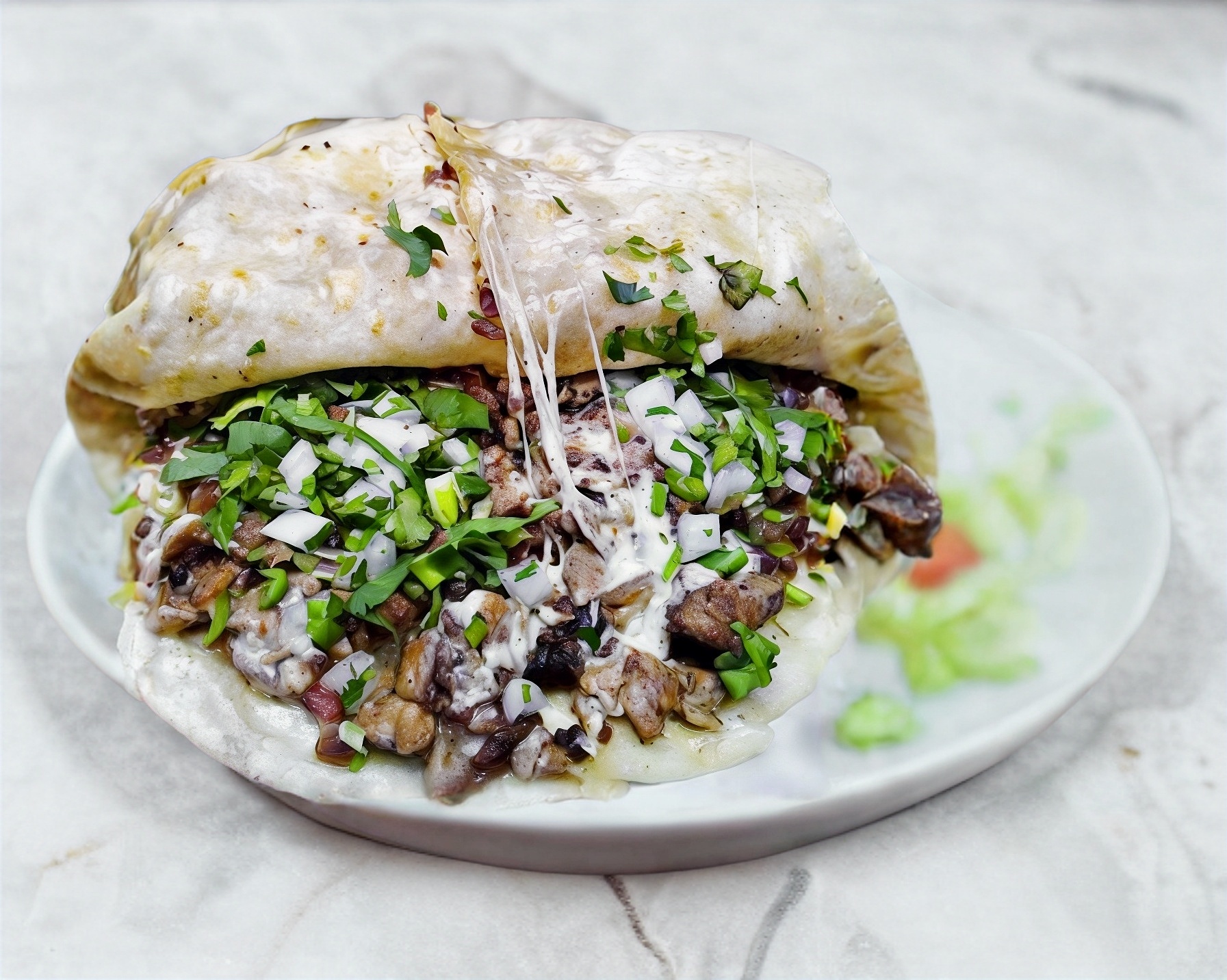 Doble tortilla de harina con champiñones y quesillo.