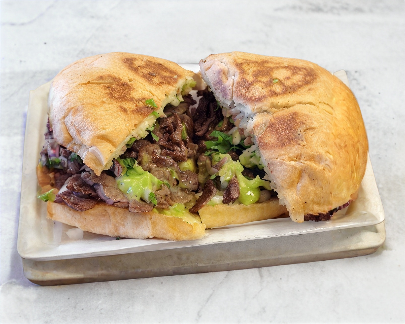 Telera rellena de porción generosa de arrachera.