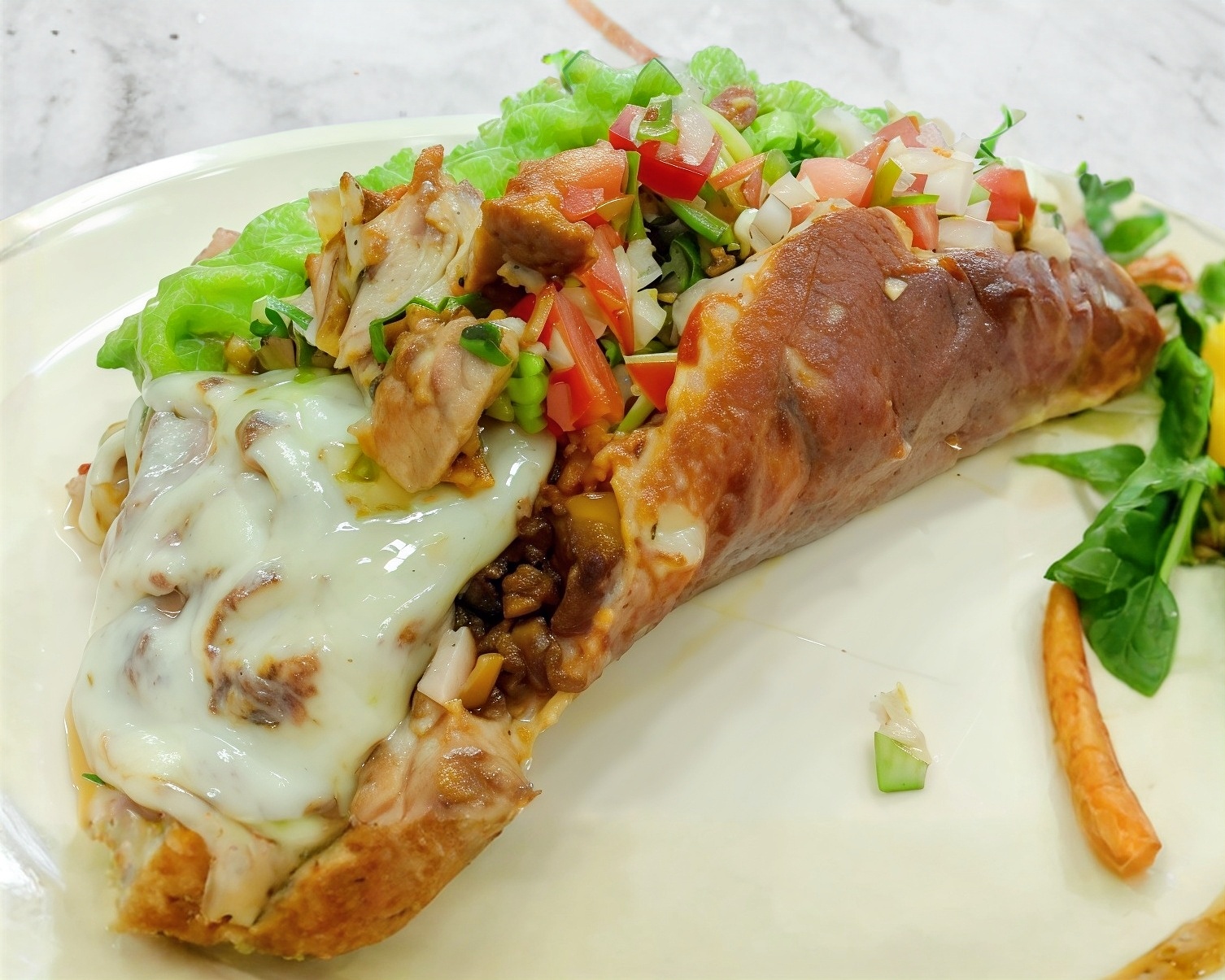 Taco de tortilla grande de pechuga asada.