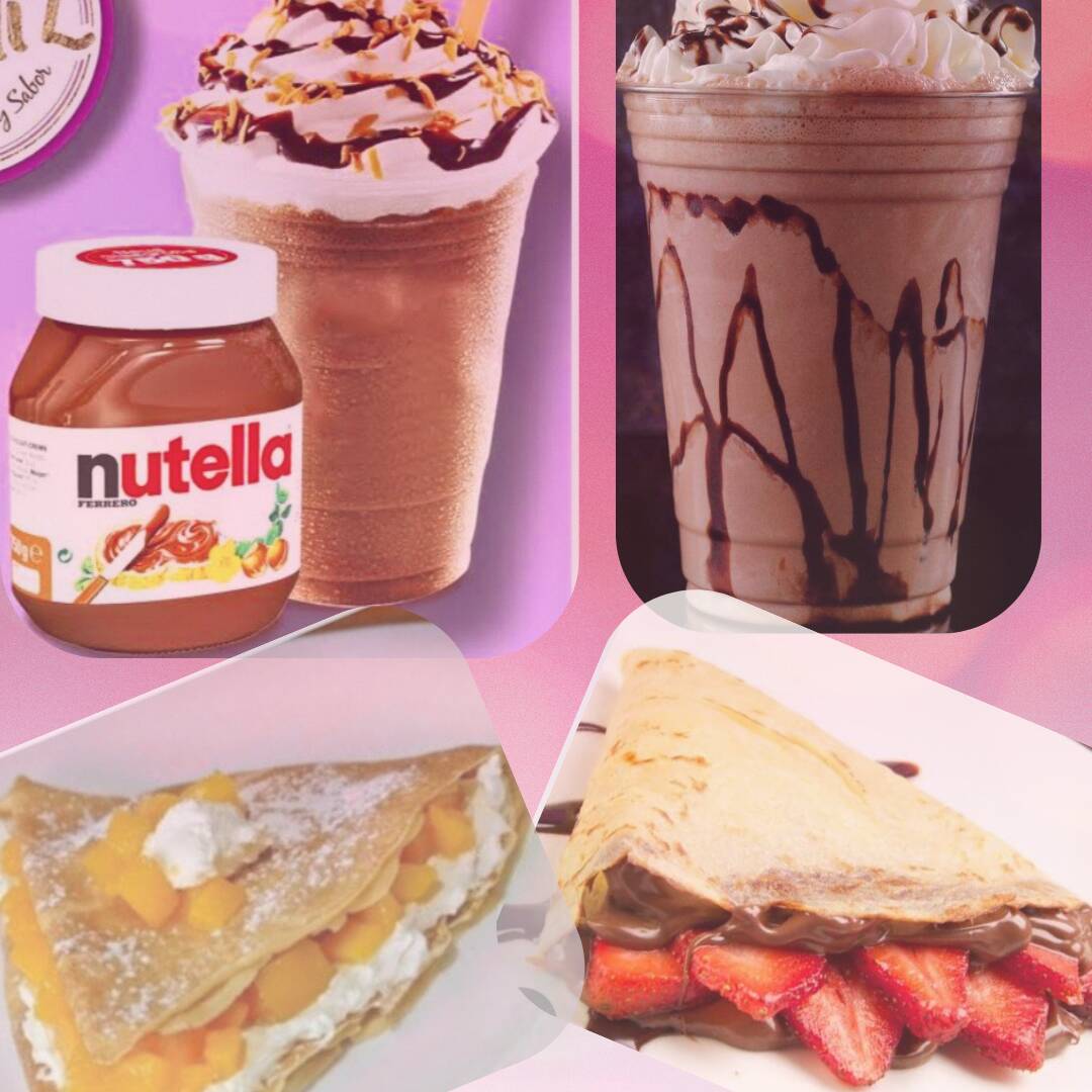 Crepa de Durazno con Philadelphia.*1 + Frappe de Chocolate*1 + Crepa de Philadelphia, Nutella,Fresa.*1 + Frappe de NUTELLA*1