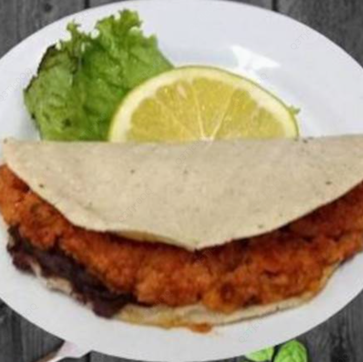Tortilla de harina, guacamole, frijoles, aderezo (mayonesa, chipotle).