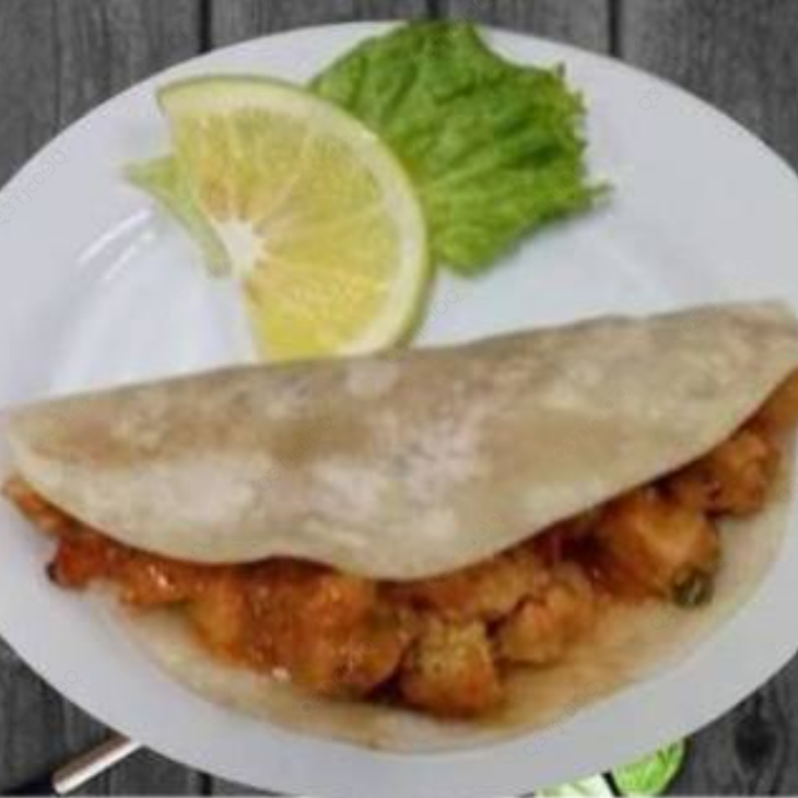 Tortilla de harina, camarón plancha, mayonesa, epazote, salsa norteña, queso manchego.