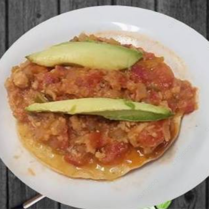 Cebolla jitomate chipotle, vinagre, sal, orégano, aguacate.