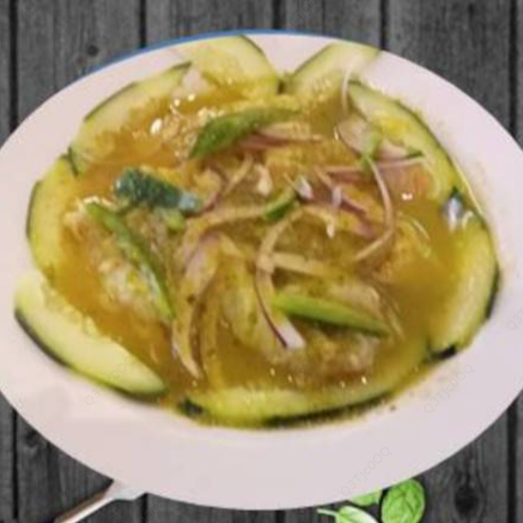 Cebolla, jugo limón, pepino, chile cuaresmeño, sal, pimienta (elija verde o rojo).