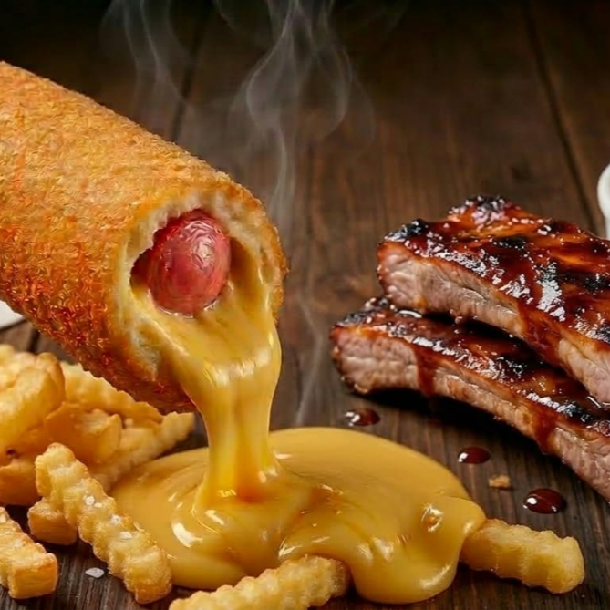 1 banderilla acompañada de papas a la francesa con 3 piezas de costillas BBQ Y papas a la francesa