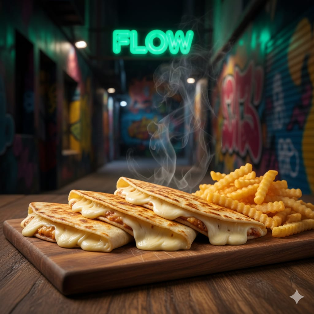 Tortillas de Harina ,Mix de 3 Quesos acompañada de 100 gramos de papas a la francesa