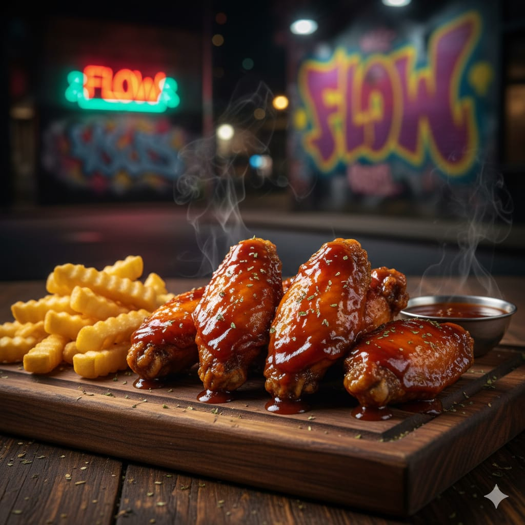 5 ALITAS BBQ Y 1 HOTDOG CON 200 GRAMOS CON PAPAS A LA FRANCESA