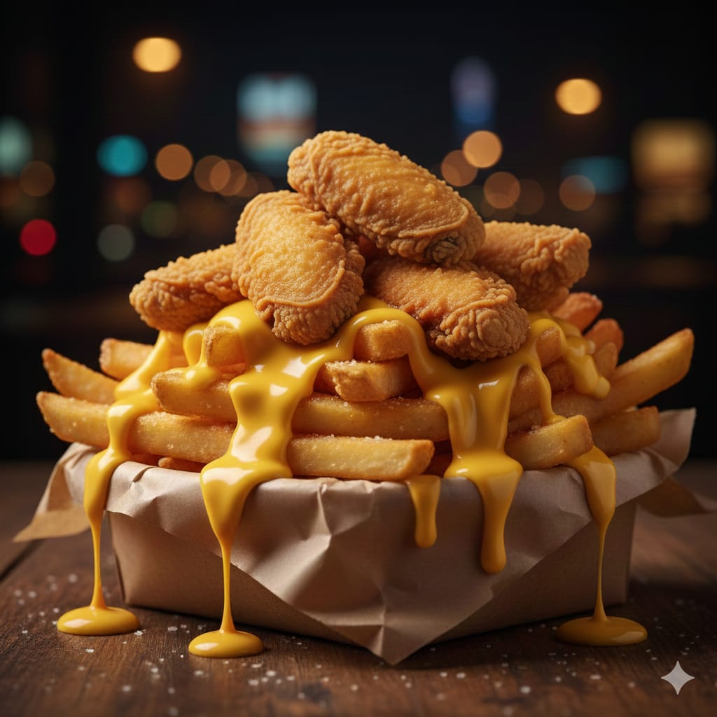 350 gramos de papas a la francesa con 200 gramos de boneless