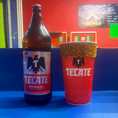 michelada corona 1.2 litros con sal y limon. Puedes disfrutarla con cualquiera de los escarchados de la casa: tamarindo, mango-tamarindo, picafresa y sandia.