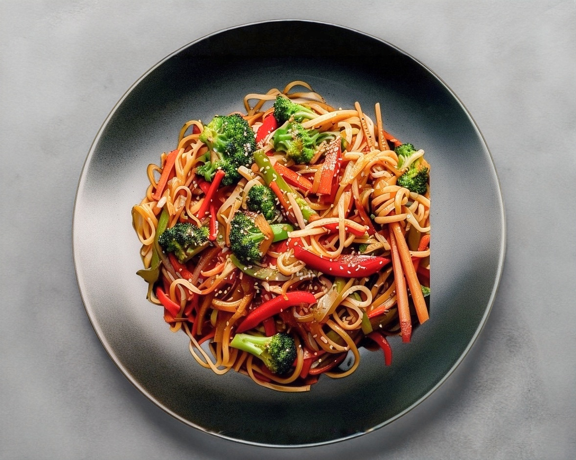 Un toque de salsa de soya, zanahoria, brócoli calabaza pollo y ajonjolí