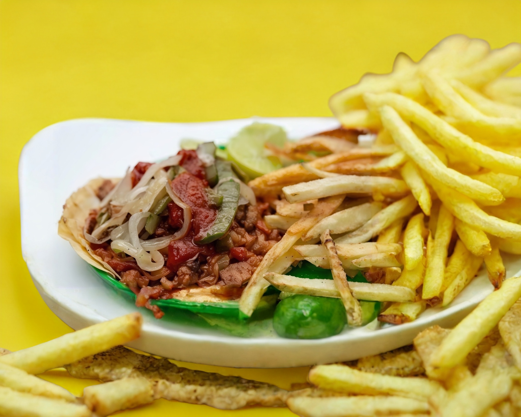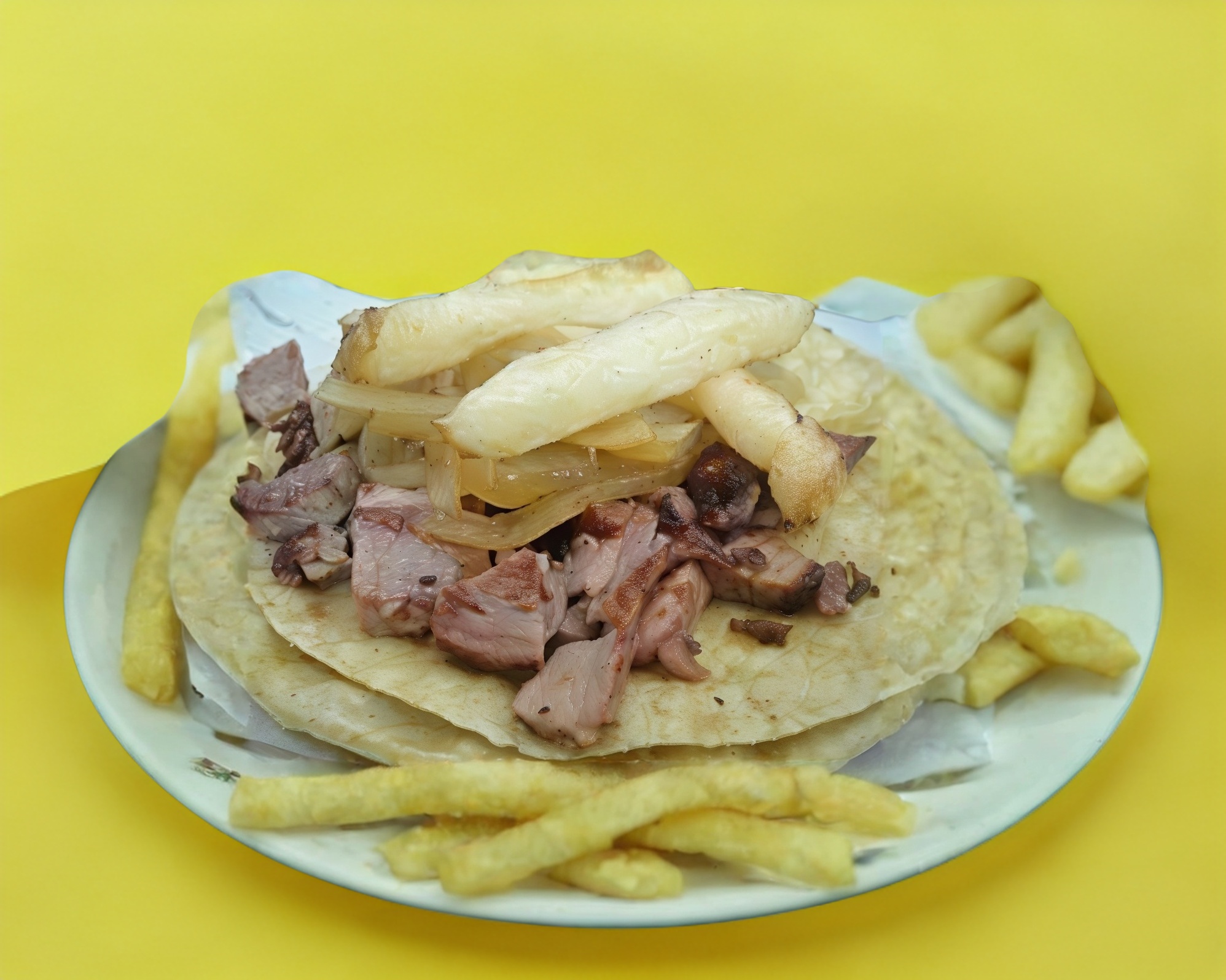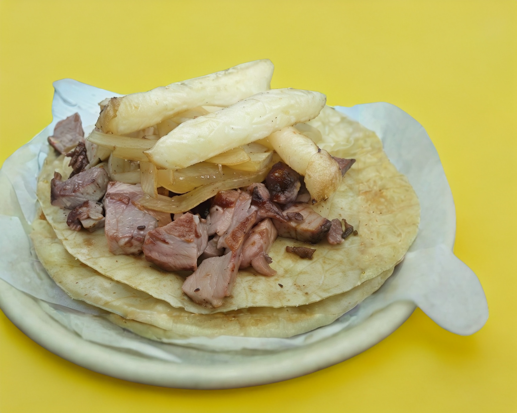 Vienen acompañados de papas a la francesa, cebolla asada, frijoles, napoles, limón, salsa verde y roja.