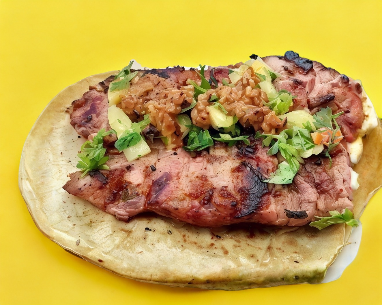 Costilla, vienen acompañados de papas a la francesa, cebolla asada, frijoles, nápoles, limón, salsa verde y roja.