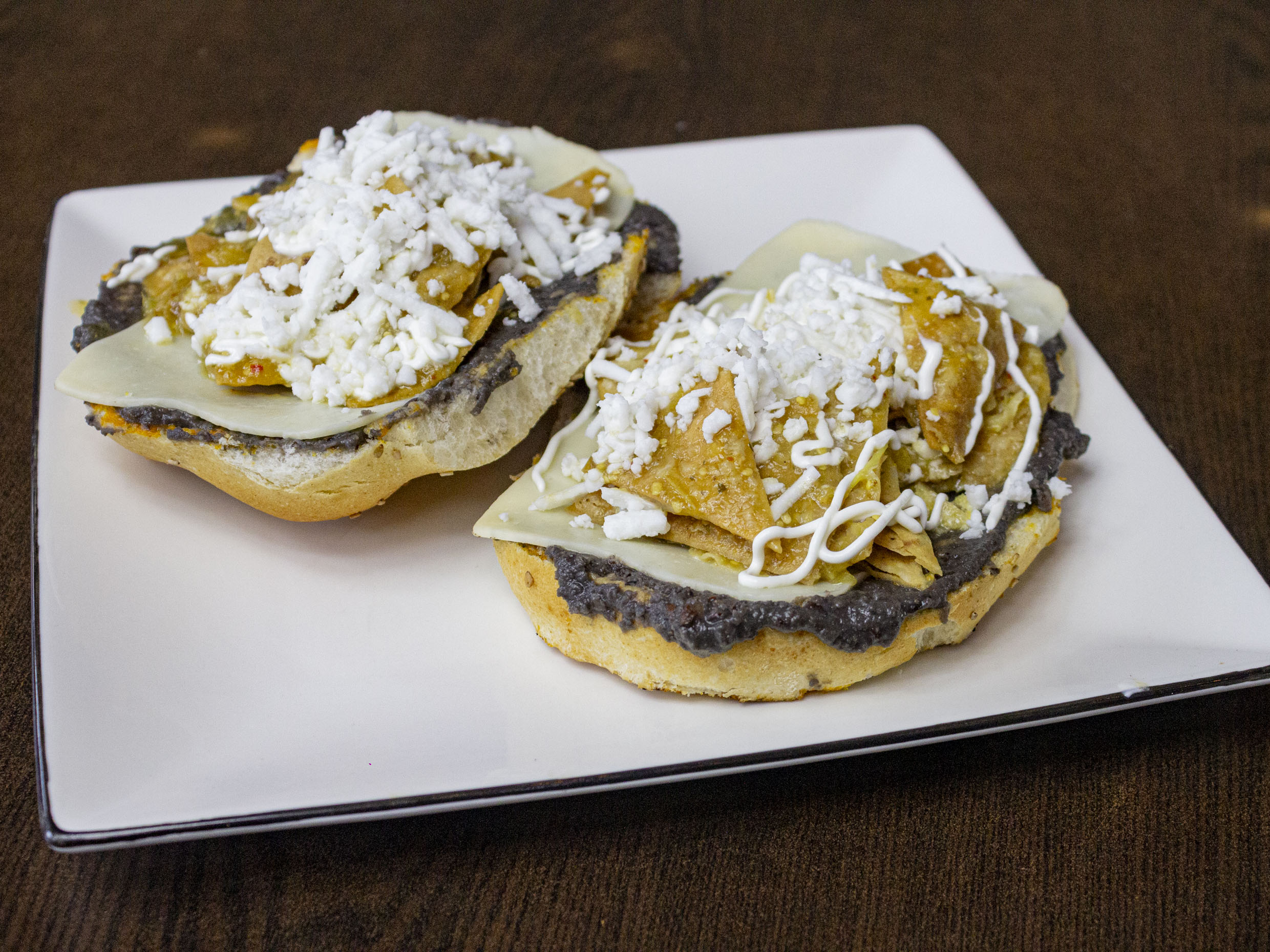 Deliciosos molletes de chilaquiles, con crema y queso