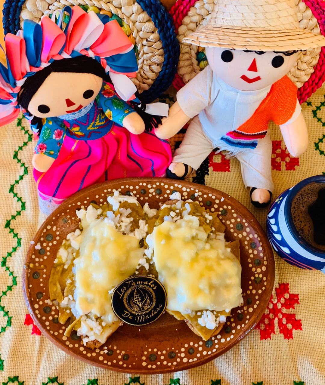 Tradicional Oaxaqueño, ahogado en salsa verde con crema y con queso manchego gratinado.