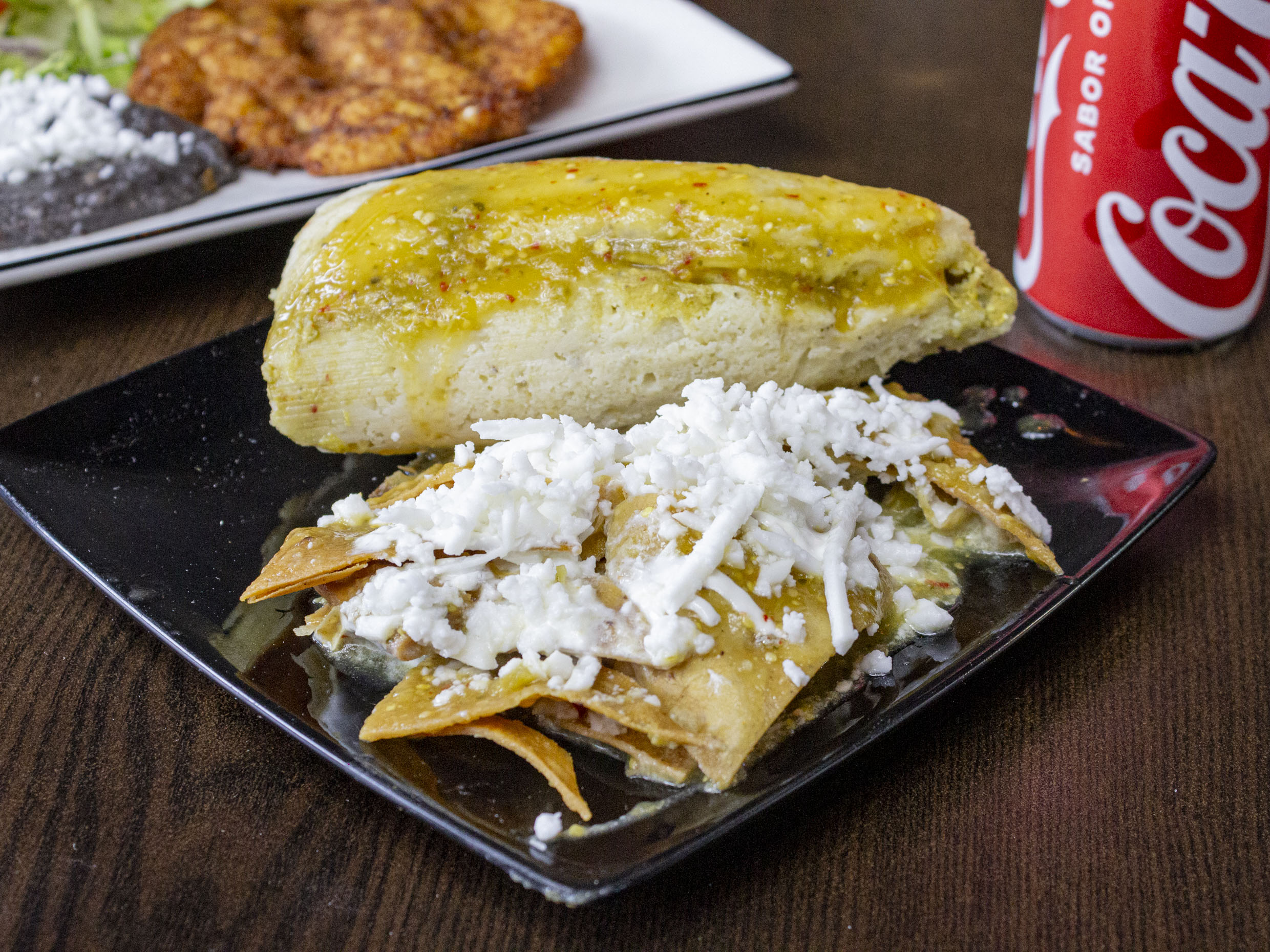 Tamal con Chilaquiles Gratinados , Queso Manchego