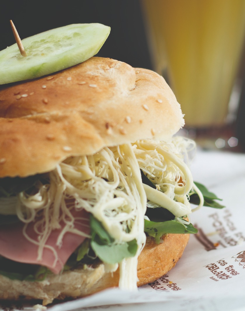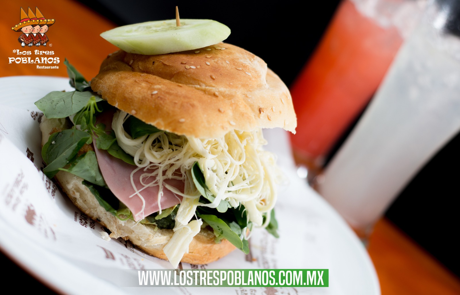 Delicioso pan con ajonjolí relleno de milanesa de pollo, aguacate, jamón, cebolla, queso oaxaca, pápalo y chipotle al gusto.