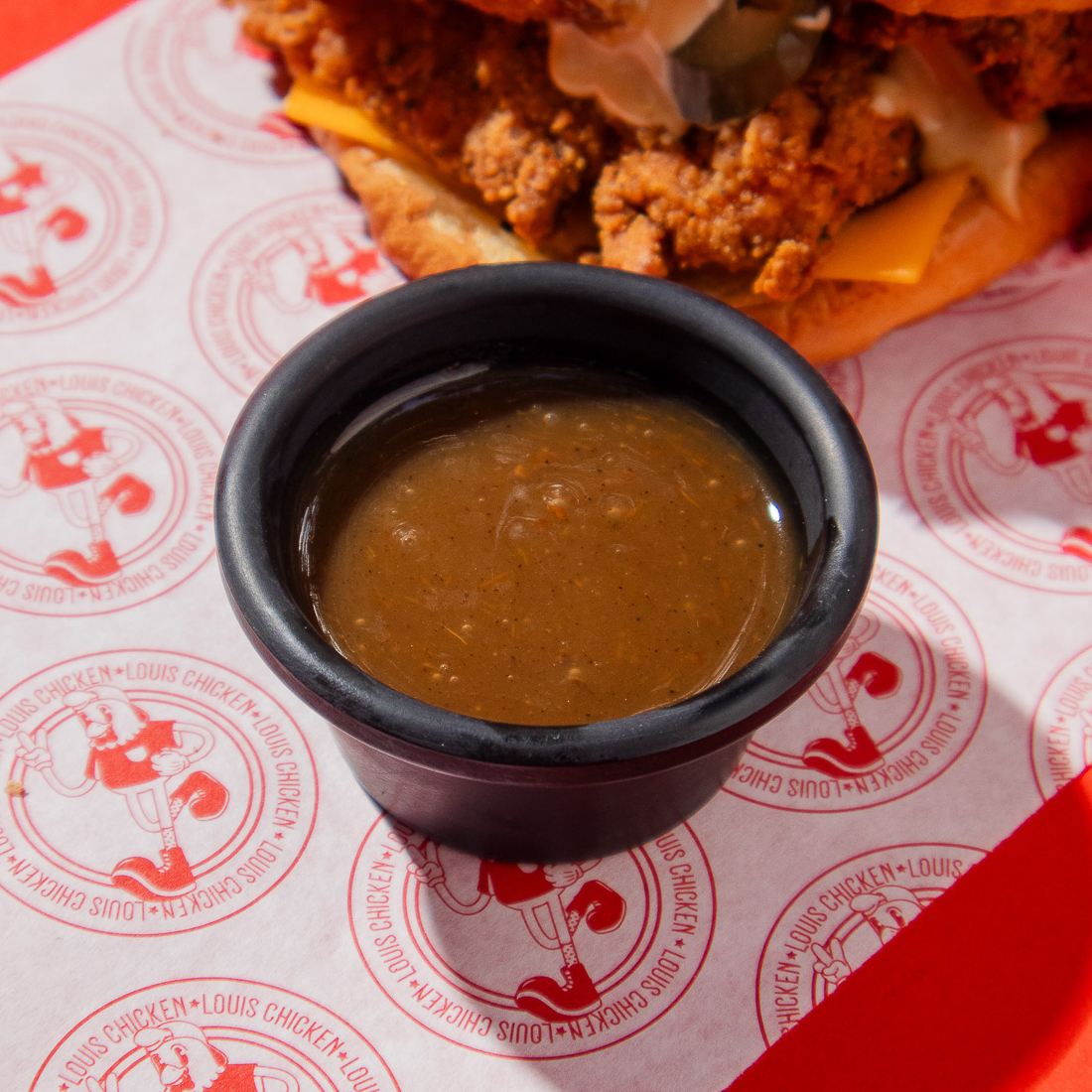 240gr de pechuga de pollo estilo Louisiana Acompañados de papas a la francesa y aderezo ahumado.