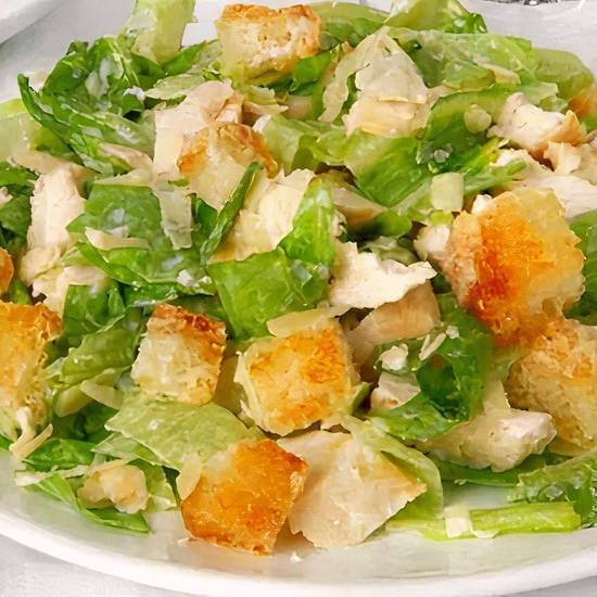 Ensalada de lechuga orejona, crutones y queso parmesano, con proteína a elección.