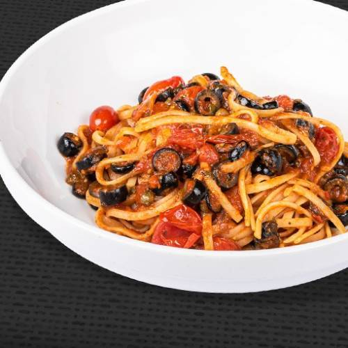¡Un clásico italiano!, con salsa pomodoro y el exquisito sabor que le brindan las alcaparras, aceitunas negras, anchoas y jitomate cherry.