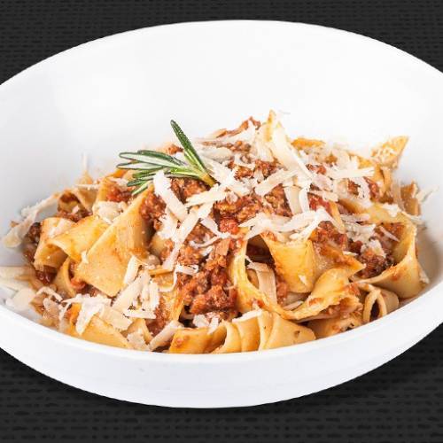 Reconfortante; con salsa ragú y lluvia de queso parmesano.
