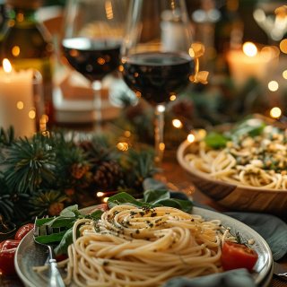 Pasta spaghetti, salsa pomodoro, jitomate cherry, albahaca y pimienta negra molida.