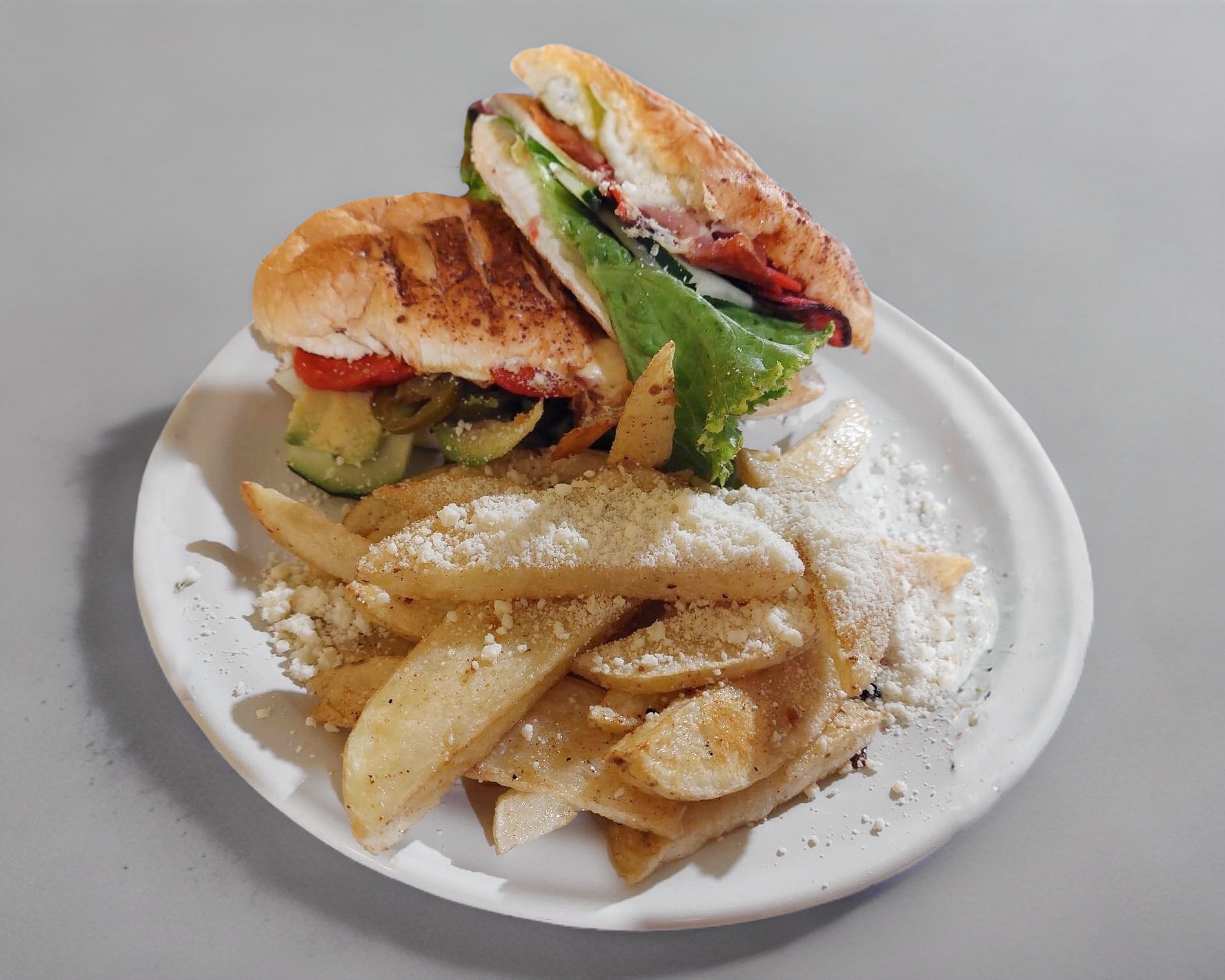 Pan bagette relleno de queso panela, manchego y oaxaca