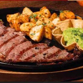 Hamburguesa de arrachera, queso manchego, mayonesa, lechuga, jitomate asado, guacamole y nuestro pan de la casa. elige una sola guarnicion.