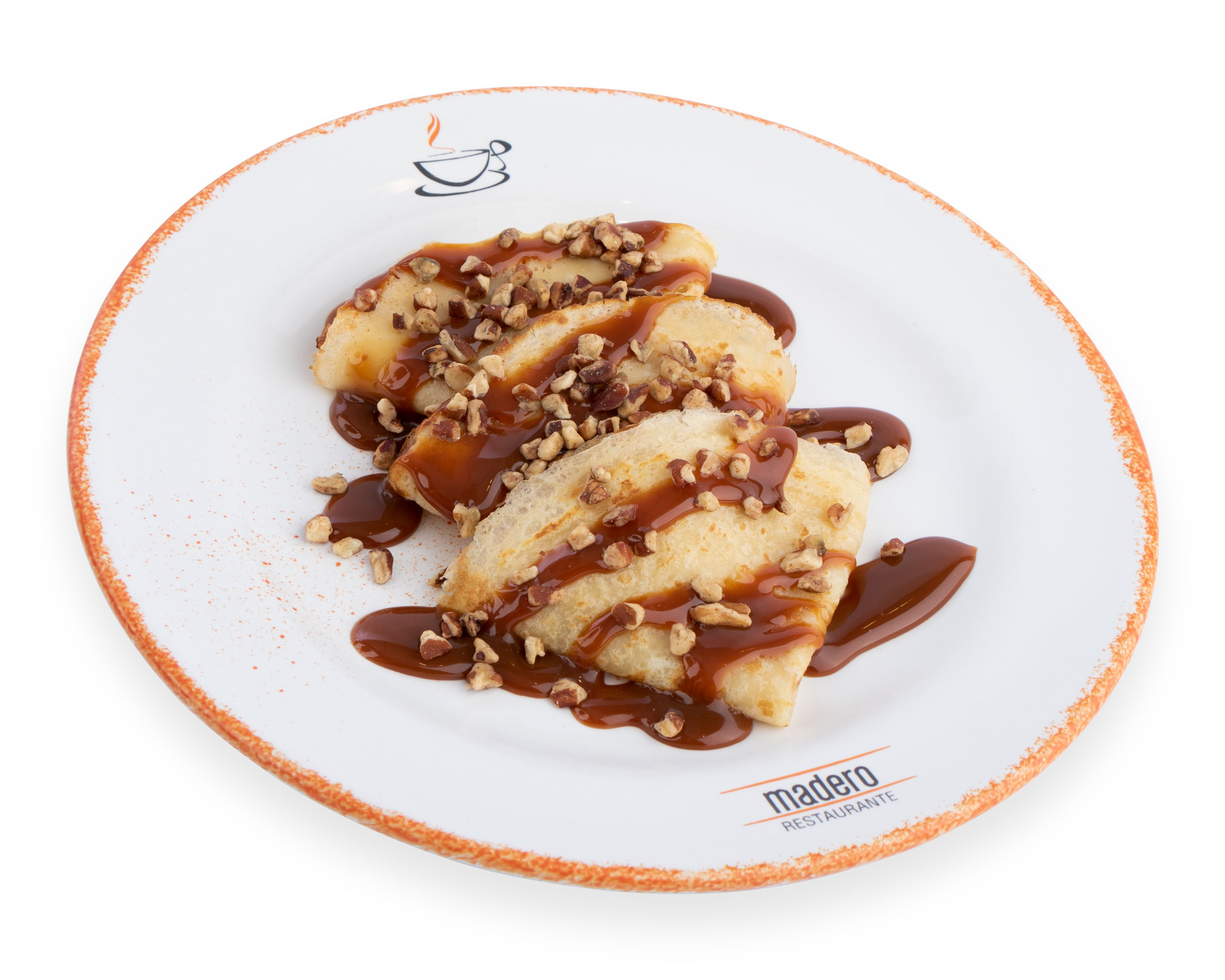 3 piezas con con crema batida de avellana, plátano tabasco, fresas, nuez y azúcar glass.