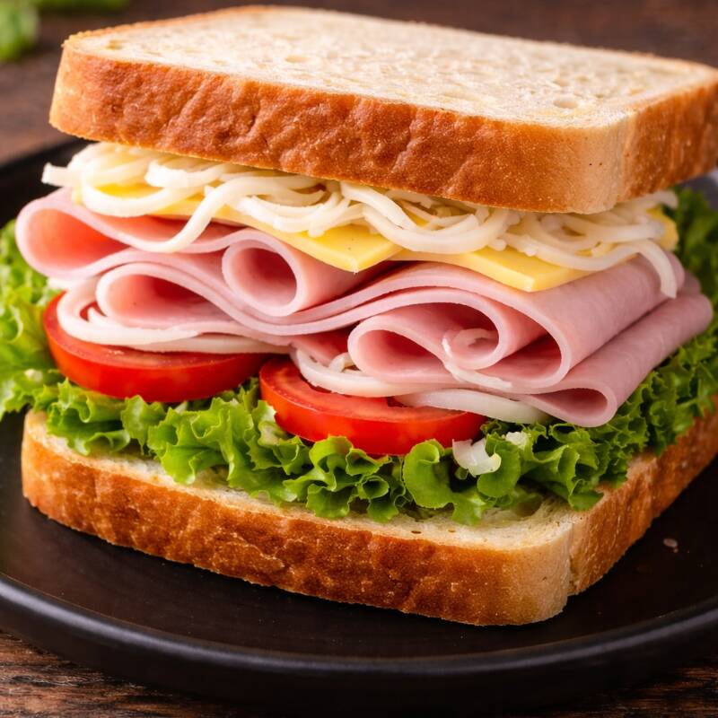 LECHUGA, JUTOMATE, CEBOLLA, JAMON DE PIERNA, QUESO AMERICANO Y QUESILLO