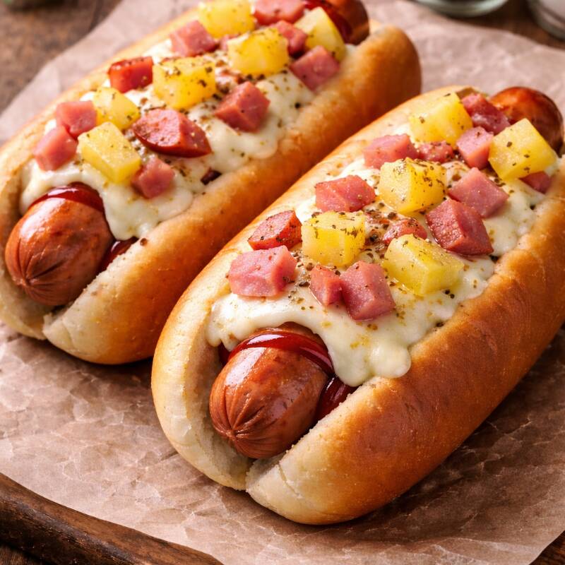 SALCHICHA, QUESO, JAMON Y PIÑA