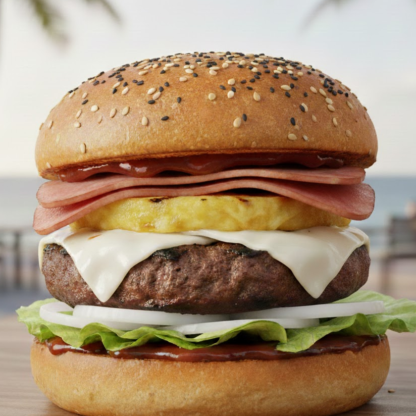 CARNE DE RES, JITOMATE, CEBOLLA, LECHUGA, PIÑA, JAMON Y QUESILLO