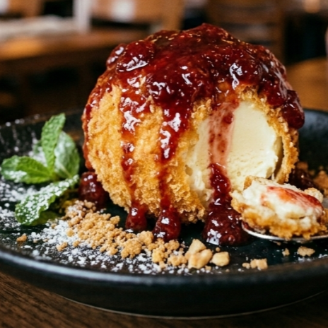 HELADO NAPOLITANO FRITO ACOMPAÑADO DE MERMELADA O LECHERA
