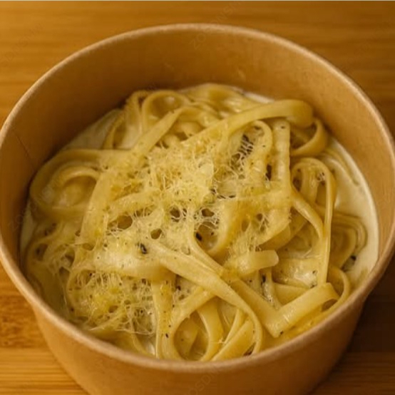 220 g De Fettuccine con una salsa blanca de mantequilla y queso, realzada con un toque de limón amarillo.