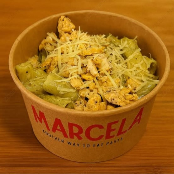 220 g De pasta Penne con salsa de pesto de pistache y mantequilla de avellana.