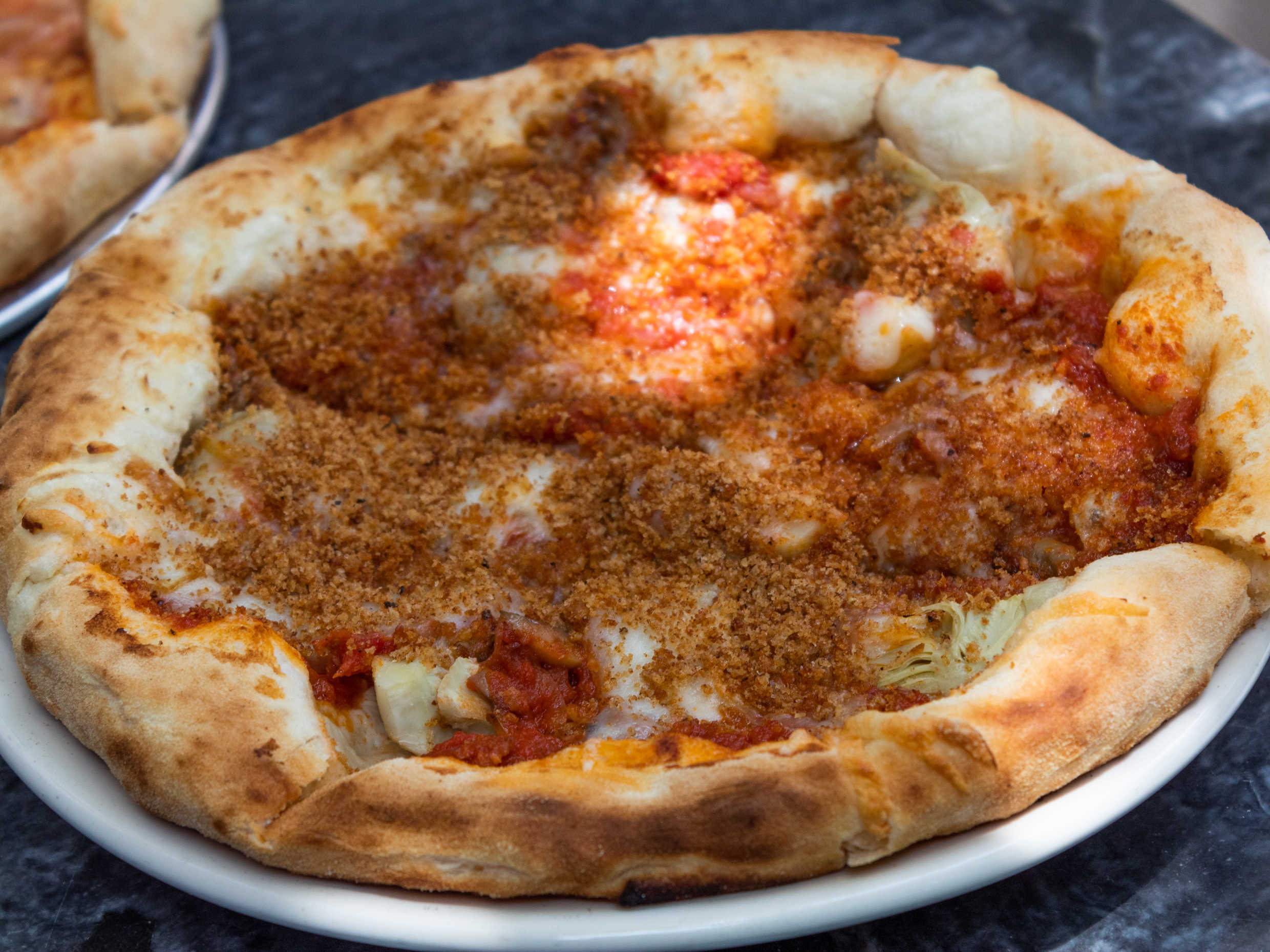 Salsa fresca de pomodoro, queso asiago, hongo portobello, aceite de trufa blanca y mortadela italiana con pistaches. 8 porciones de 490 gramos.